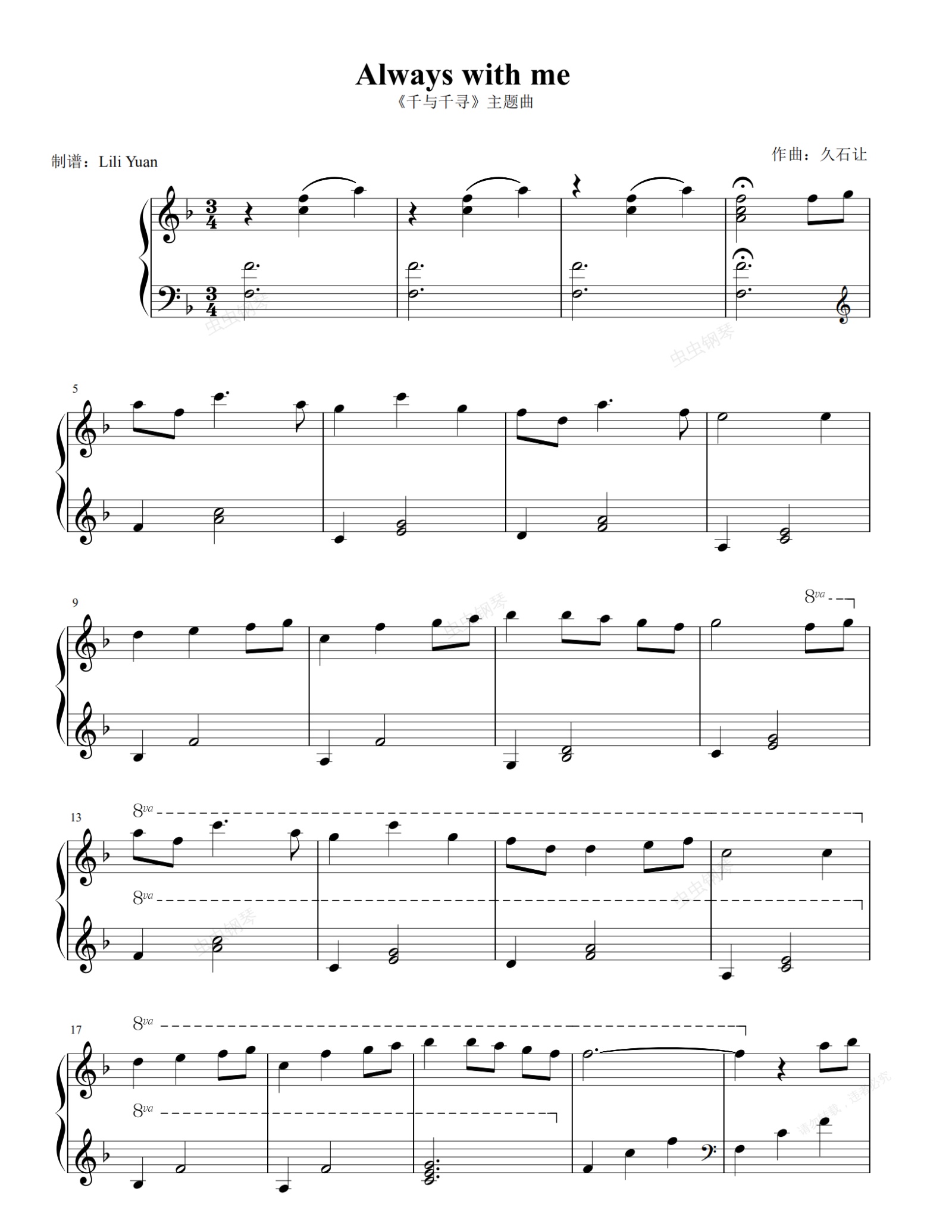 钢琴谱:Always with me 《千与千寻》主题曲 (LY)
