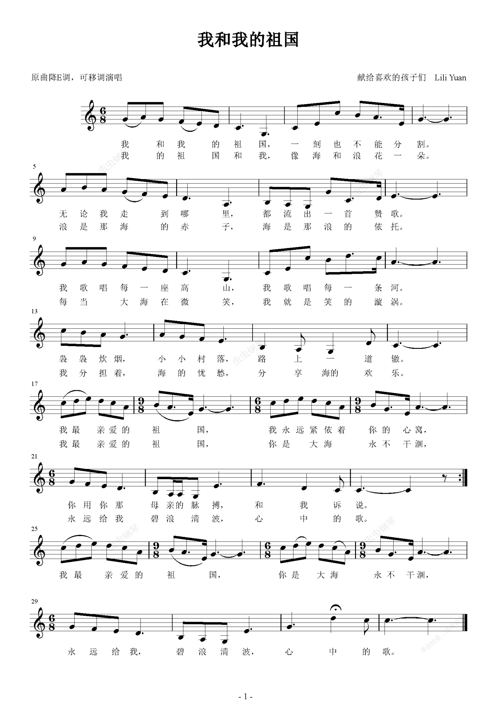钢琴谱:我和我的祖国 单谱演唱版(LY)