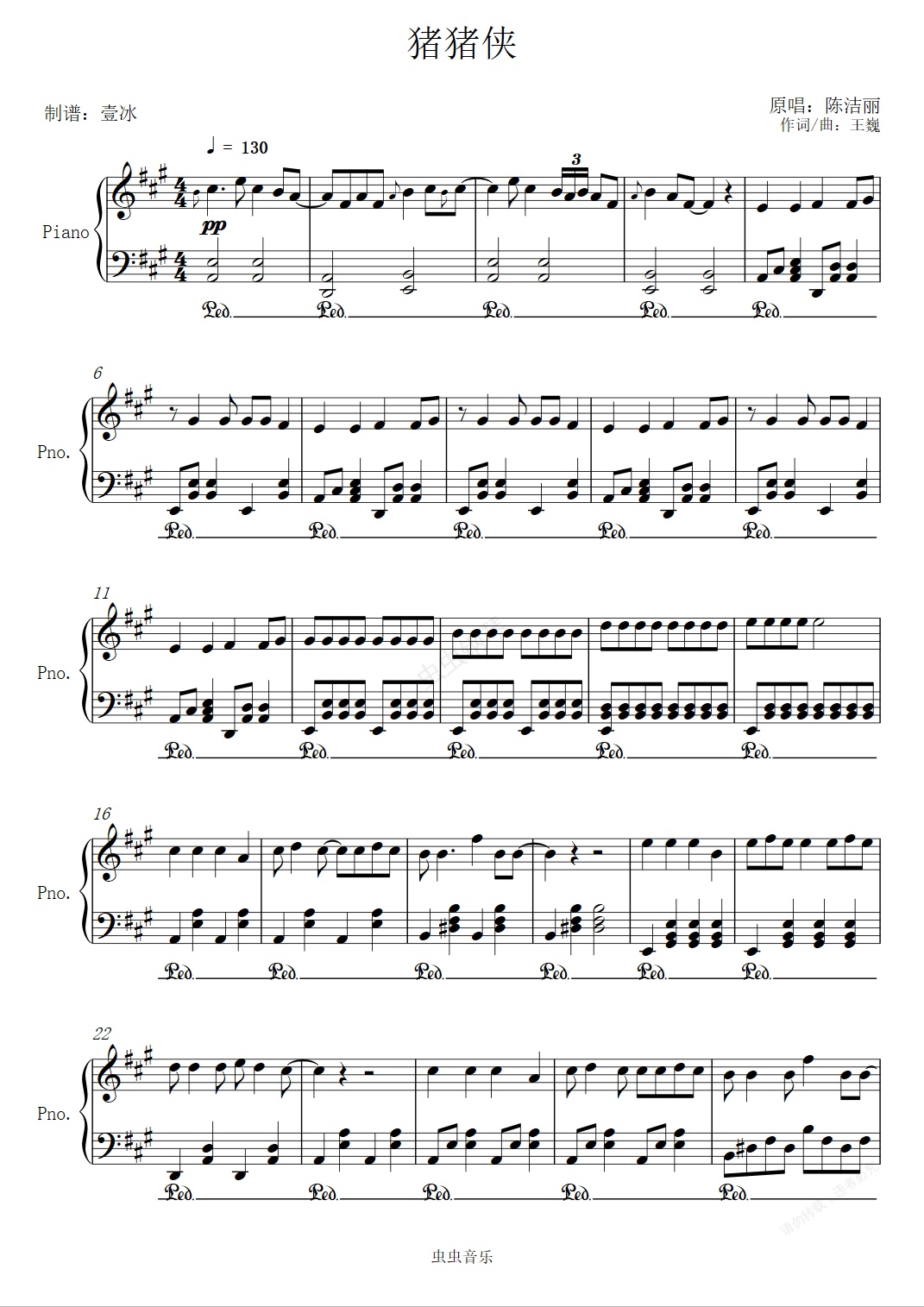钢琴谱:猪猪侠-壹冰钢琴版