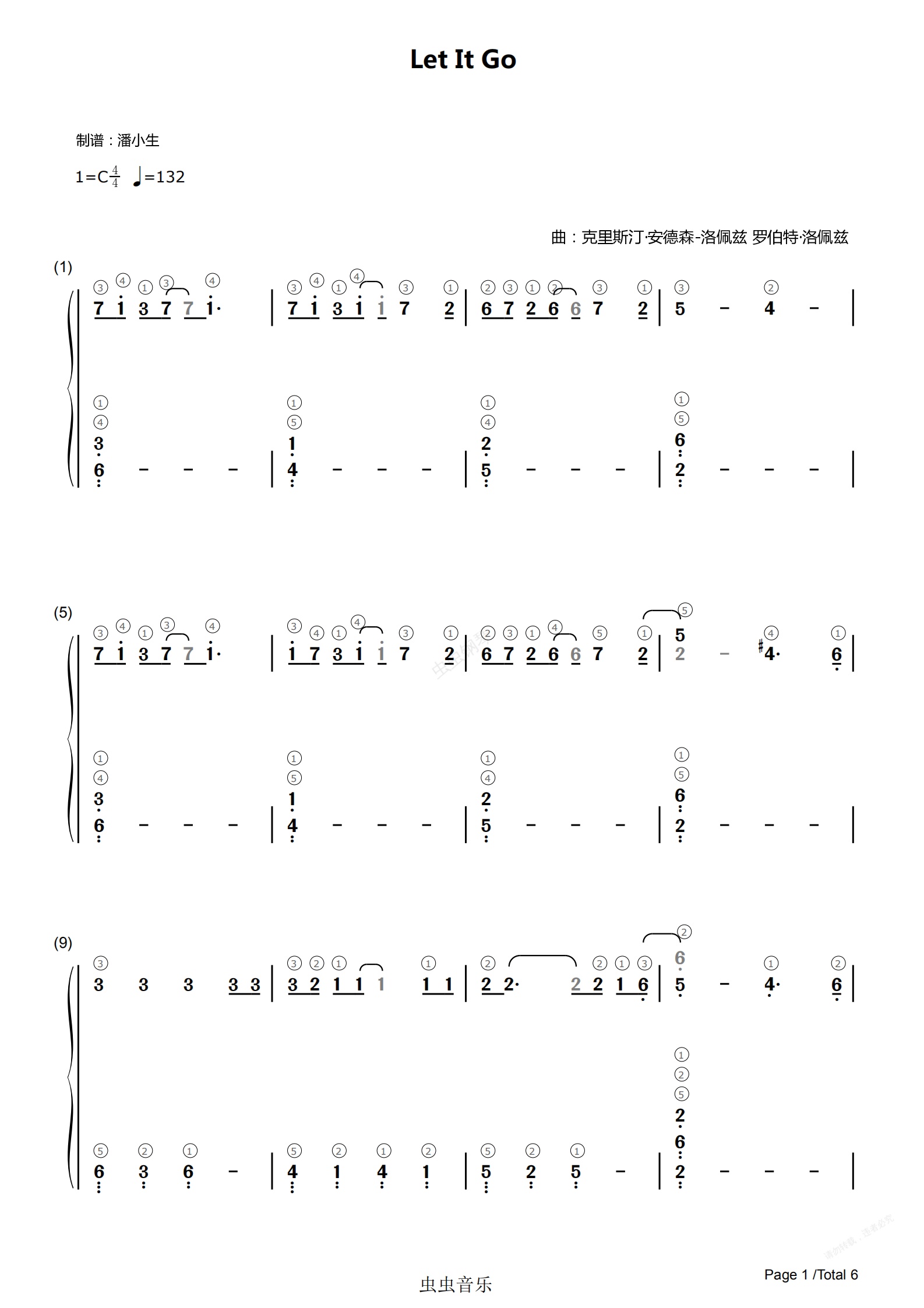 钢琴谱:[双手简谱] let it go 完整指法 C大调 简易版 《冰雪奇缘》主题曲  frozen 随它吧