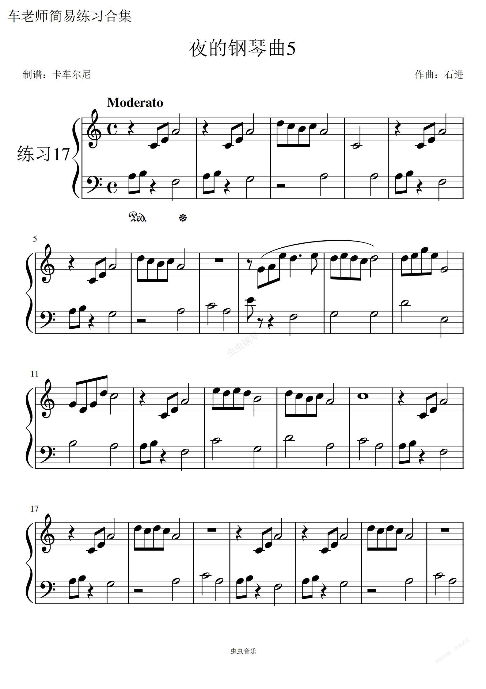 钢琴谱:夜的钢琴曲5 大音符C调超简易版