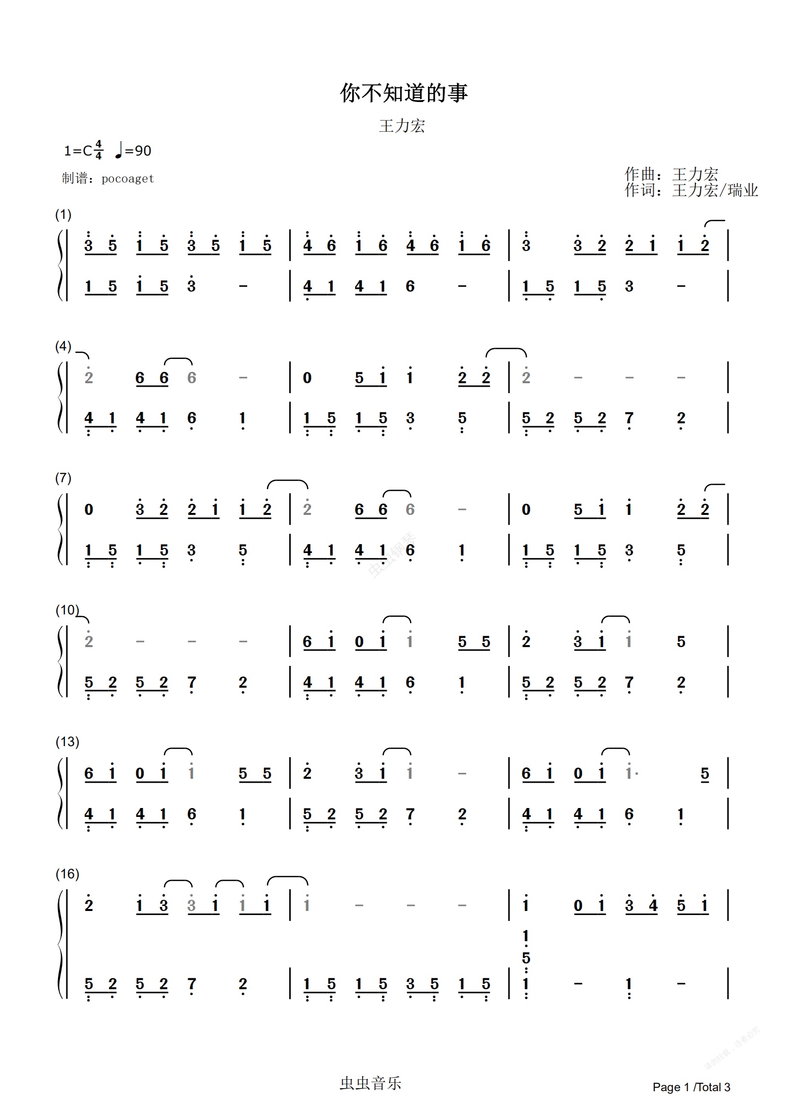 钢琴谱:《你不知道的事》简谱初学者优美王力宏(poc编配)