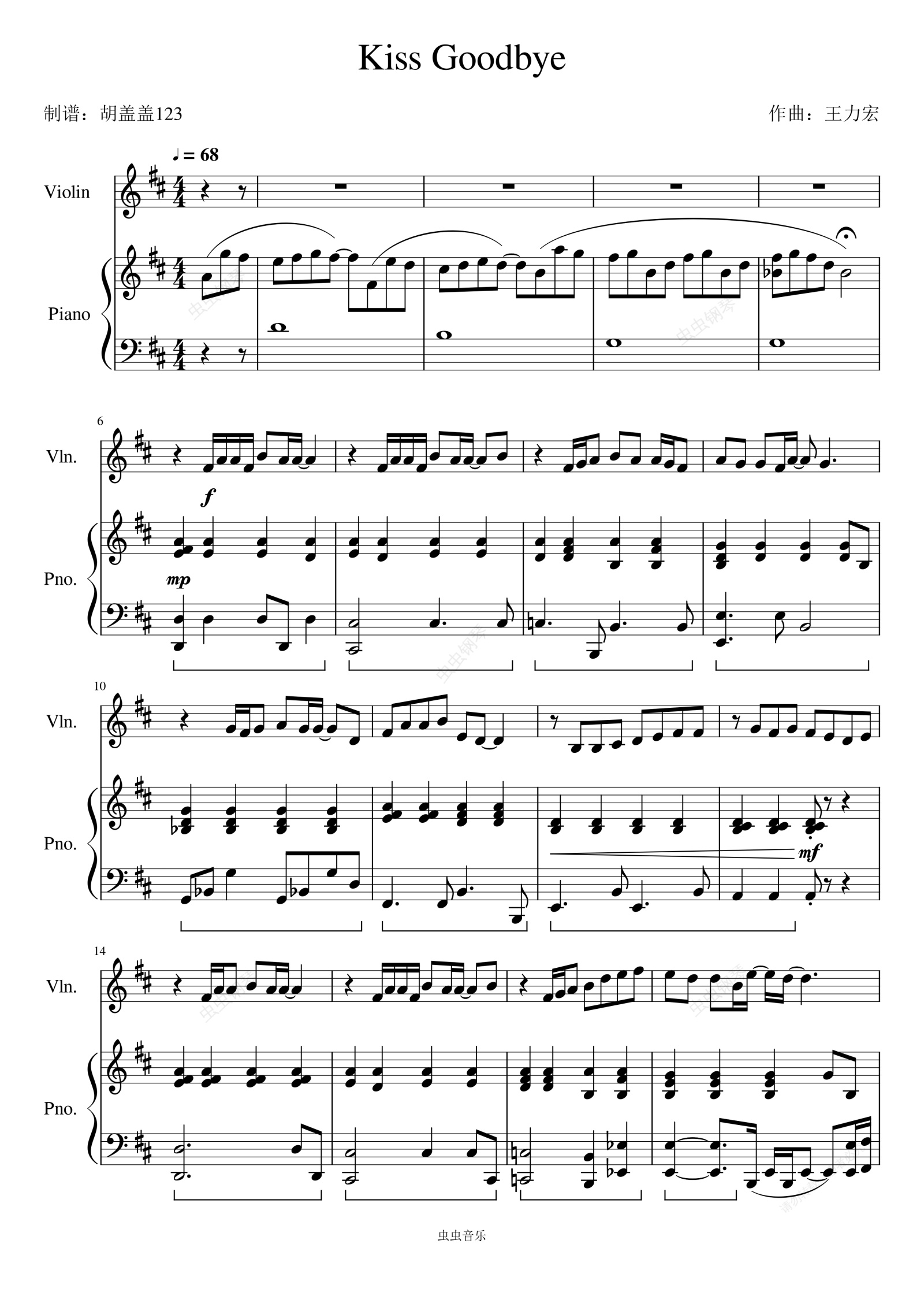 钢琴谱:Kiss Goodbye