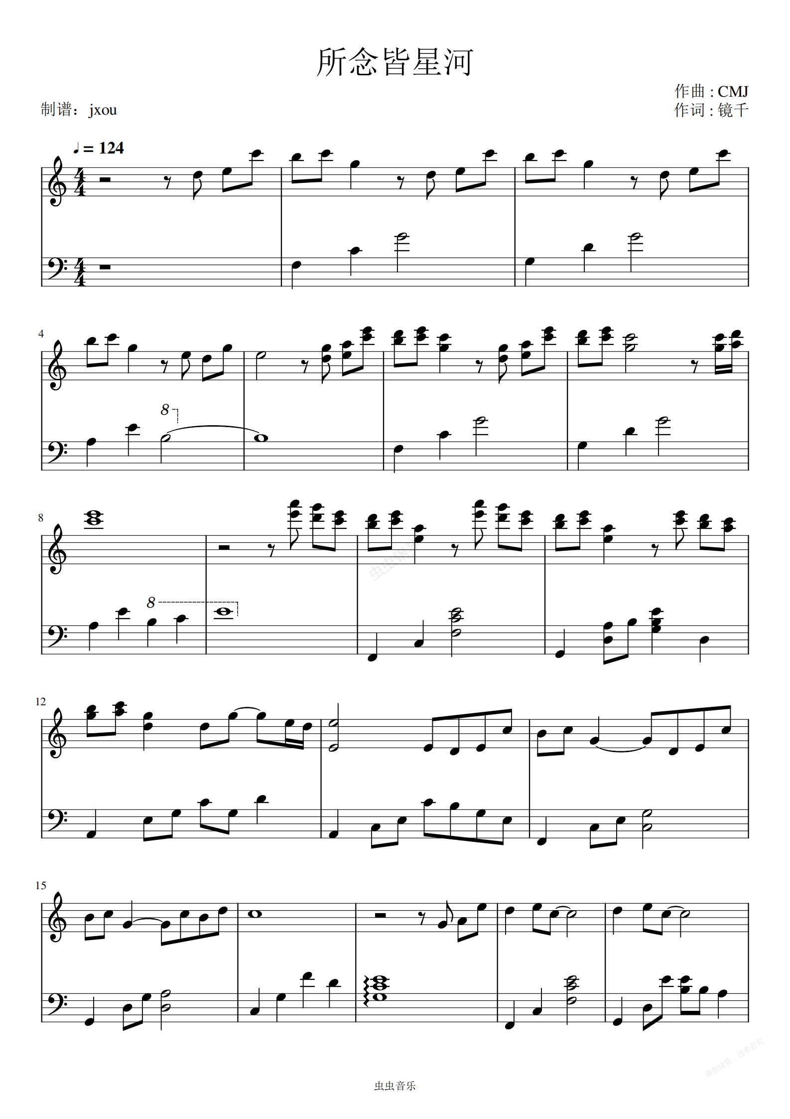 钢琴谱:所念皆星河 C调完美版 房东的猫/CMJ