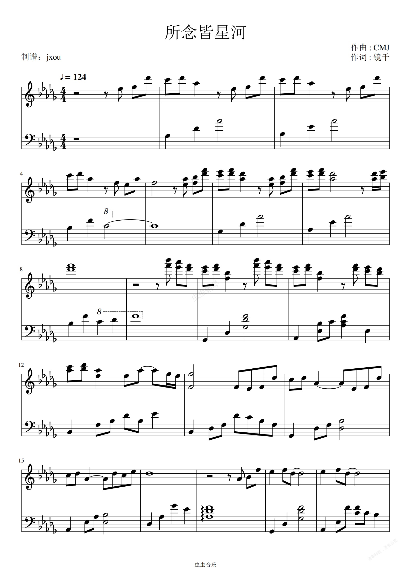 钢琴谱:所念皆星河 Db调完美版 房东的猫/CMJ