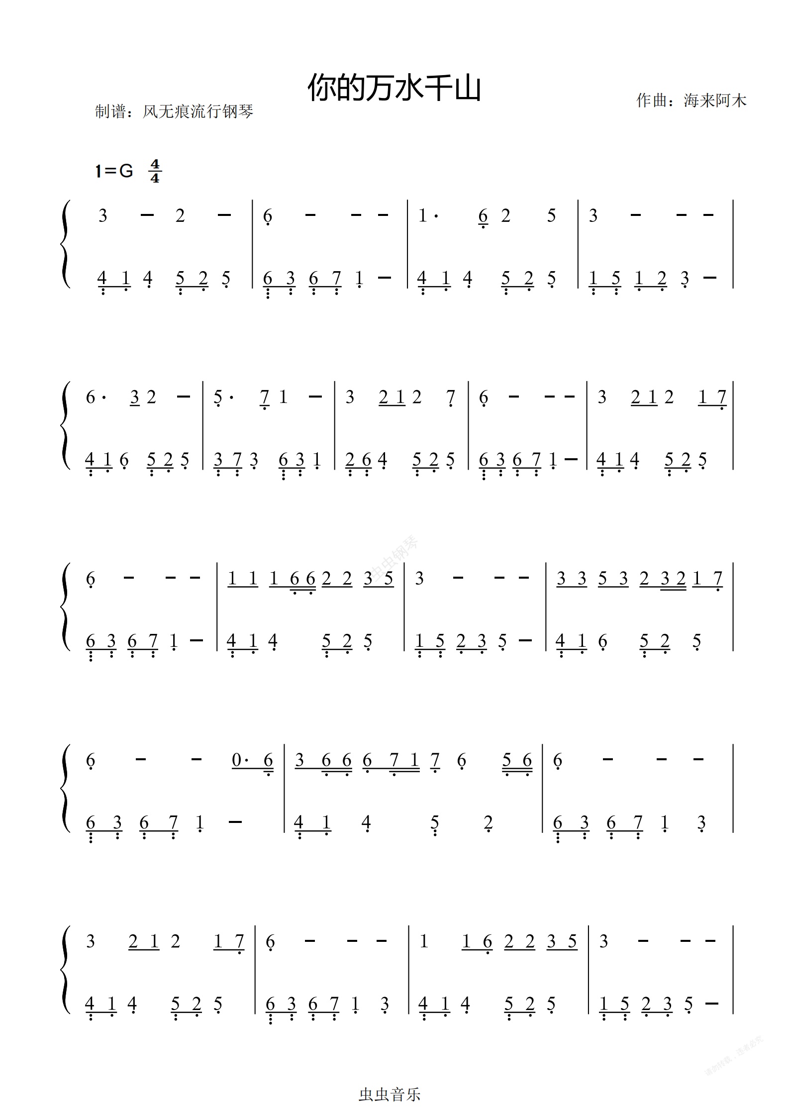钢琴谱:你的万水千山-海来阿木〖数字简谱〗