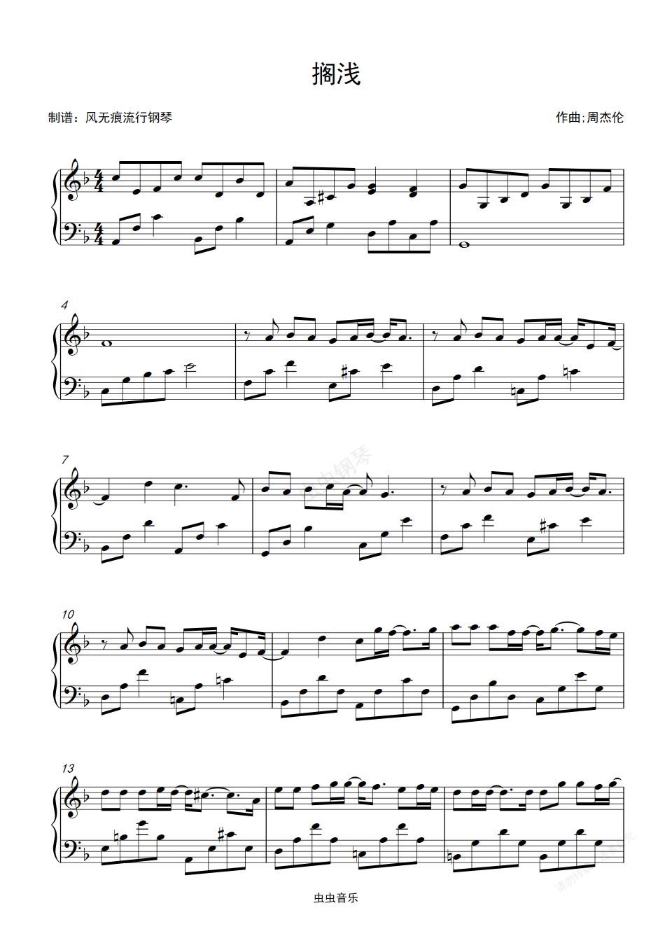 钢琴谱:搁浅-周杰伦〖简易动听〗