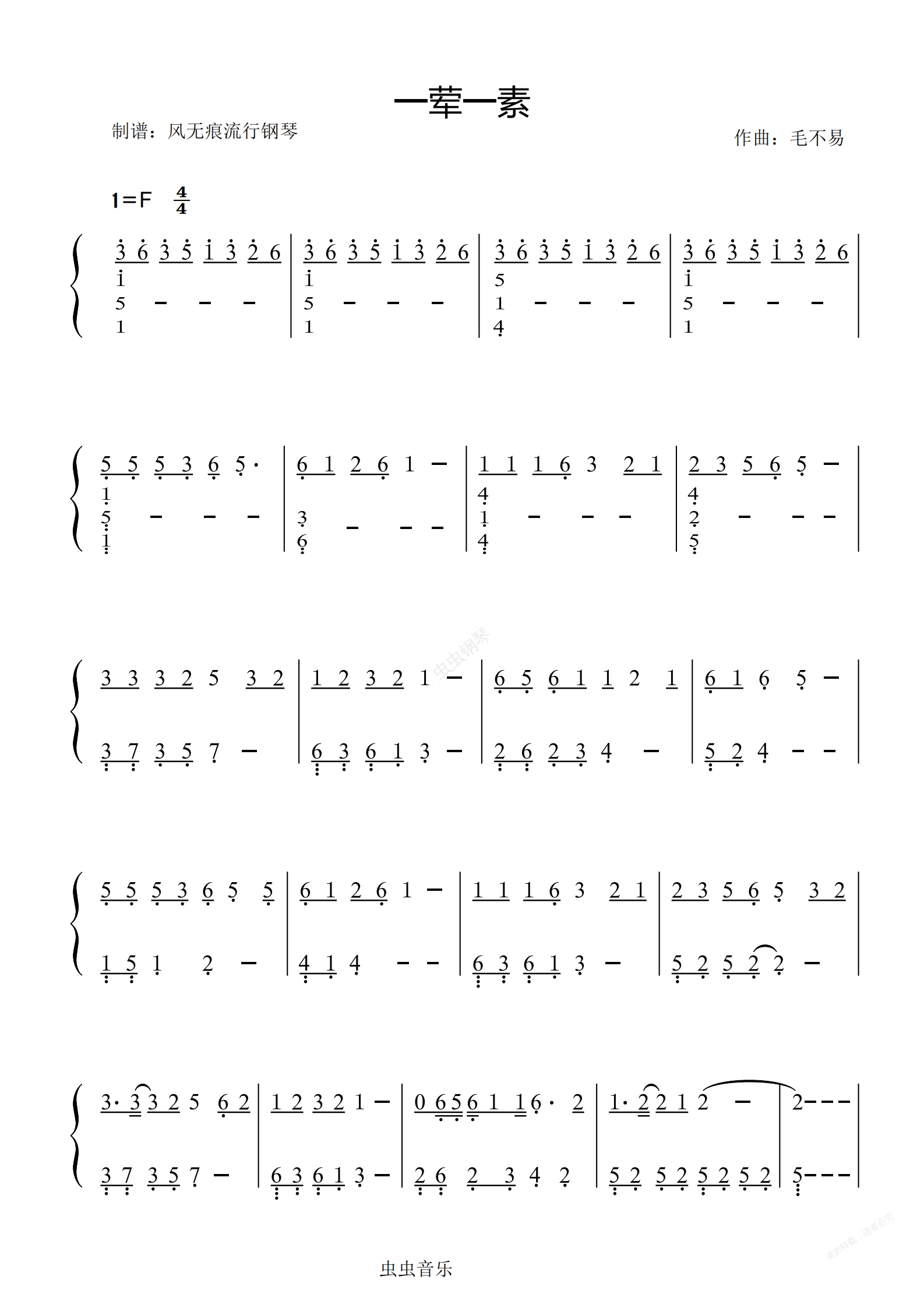 钢琴谱:一荤一素-毛不易〖数字简谱〗