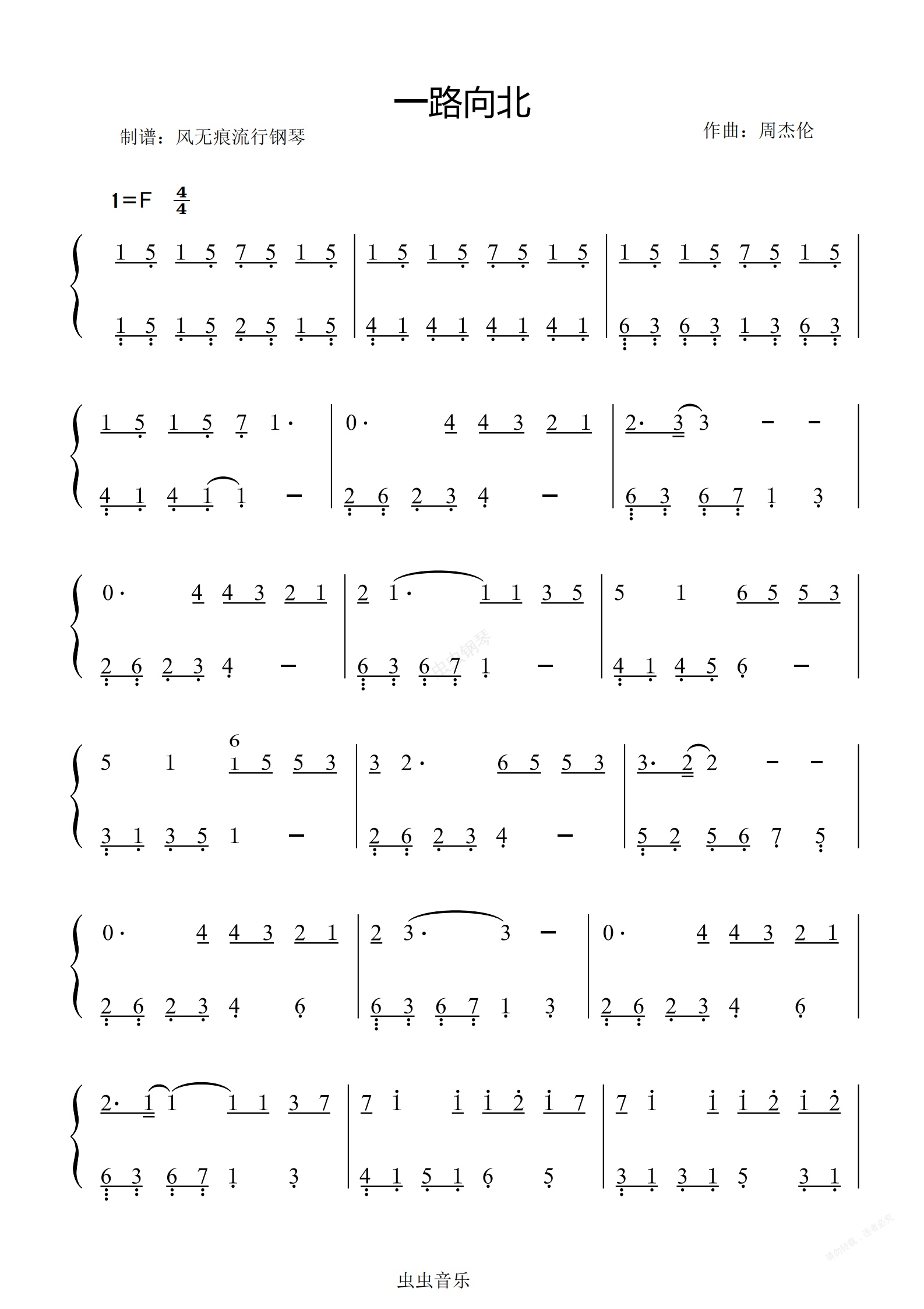 钢琴谱:一路向北-周杰伦〖数字简谱〗