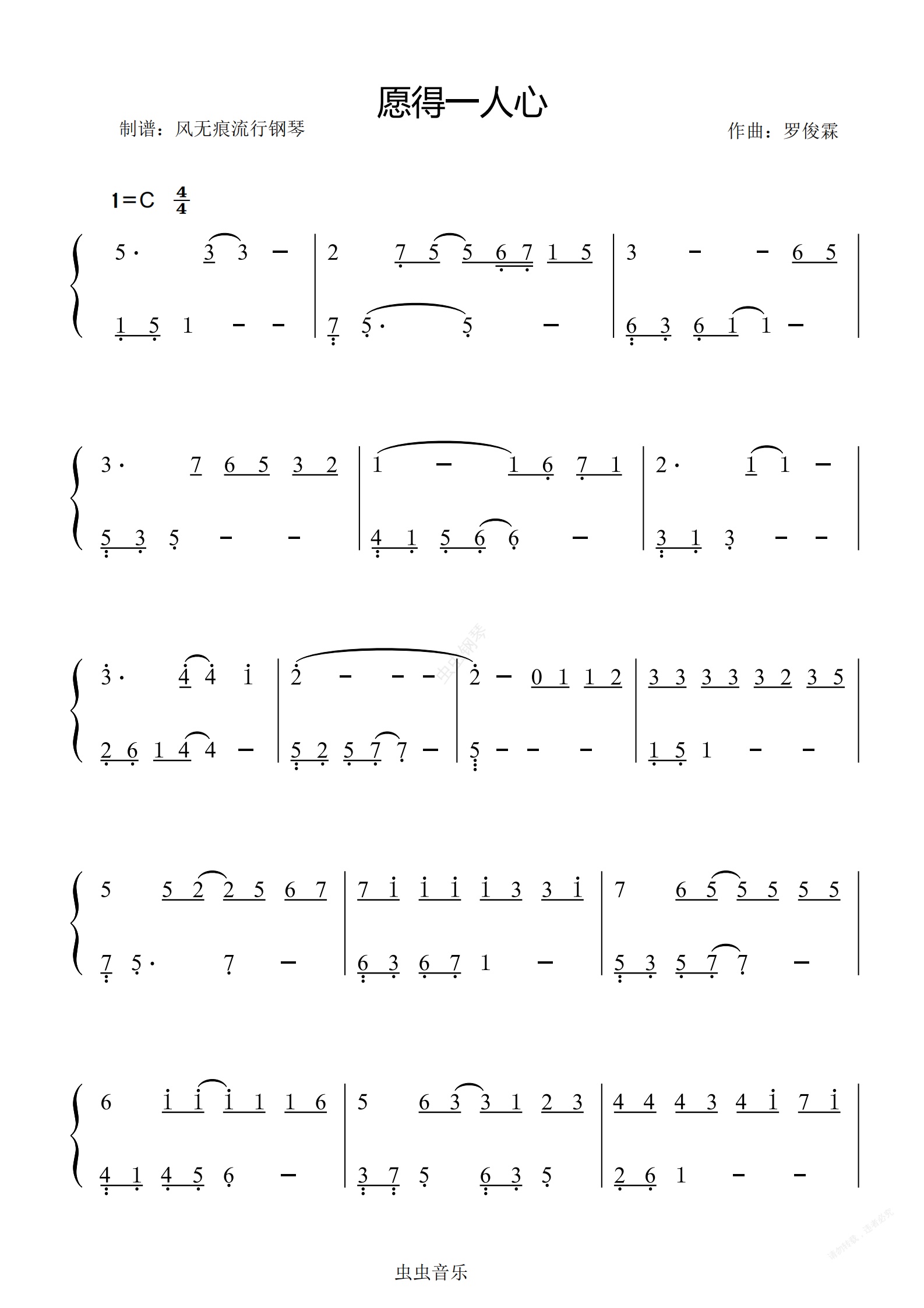 钢琴谱:愿得一人心-李行亮〖数字简谱〗