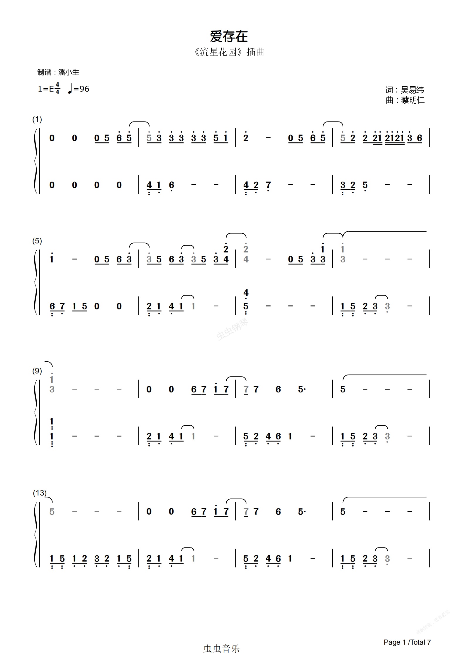 钢琴谱:[双手简谱] 爱存在 《流星花园》 插曲 完整版