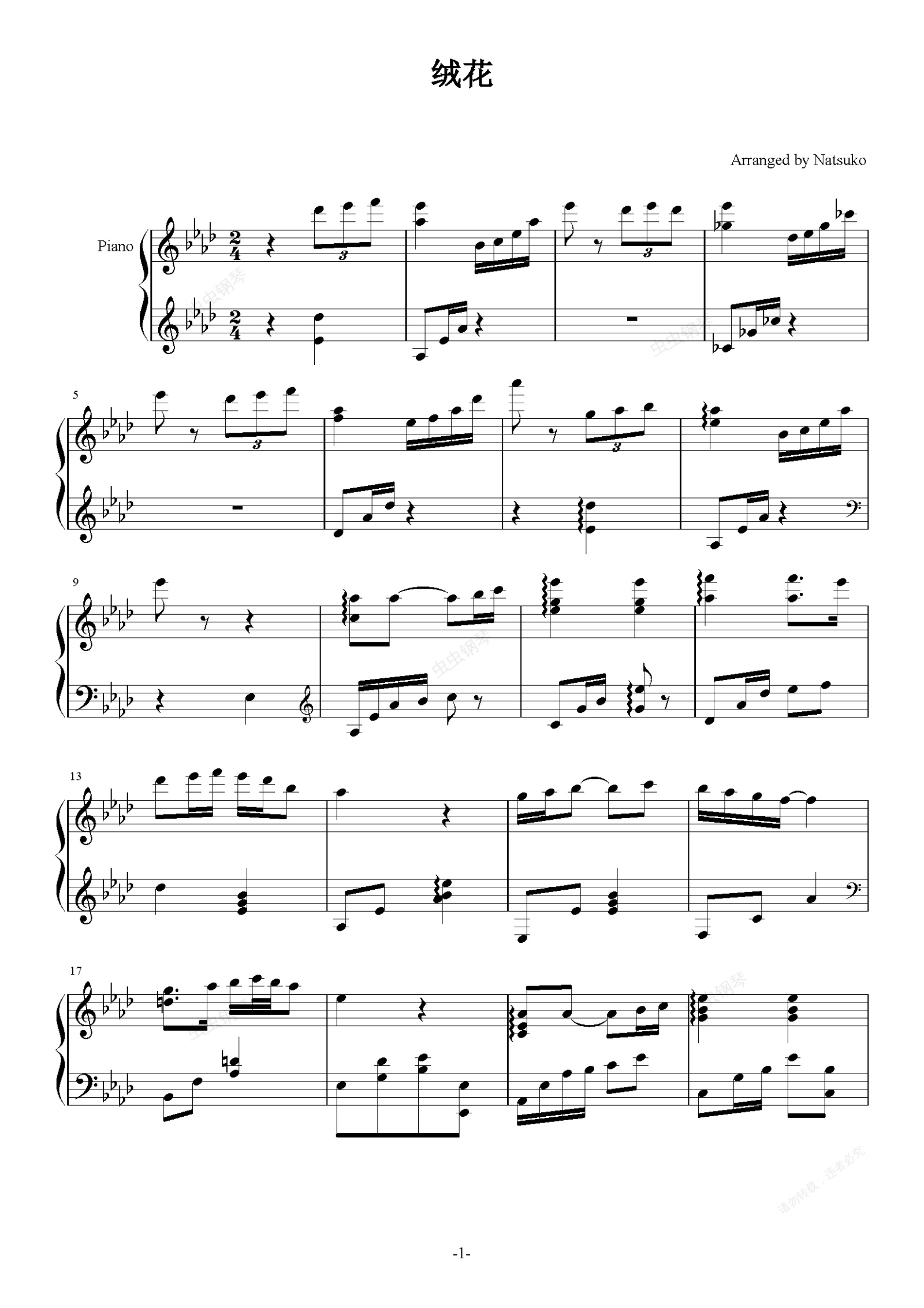 钢琴谱:绒花-芳华插曲-钢琴独奏/伴奏