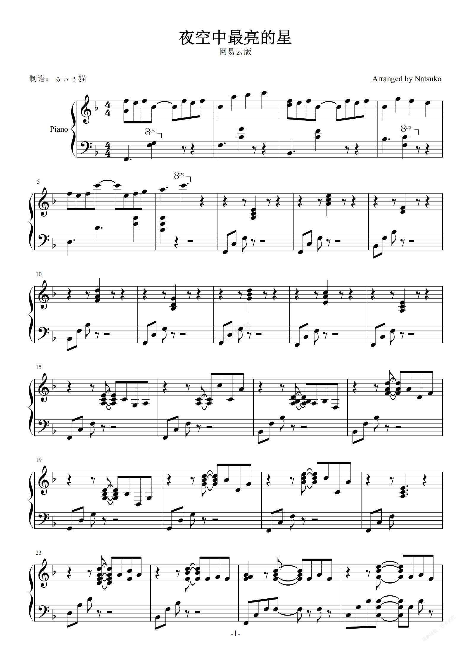 钢琴谱:夜空中最亮的星-厦门六中合唱团-合唱伴奏谱-(Cover 逃跑计划)