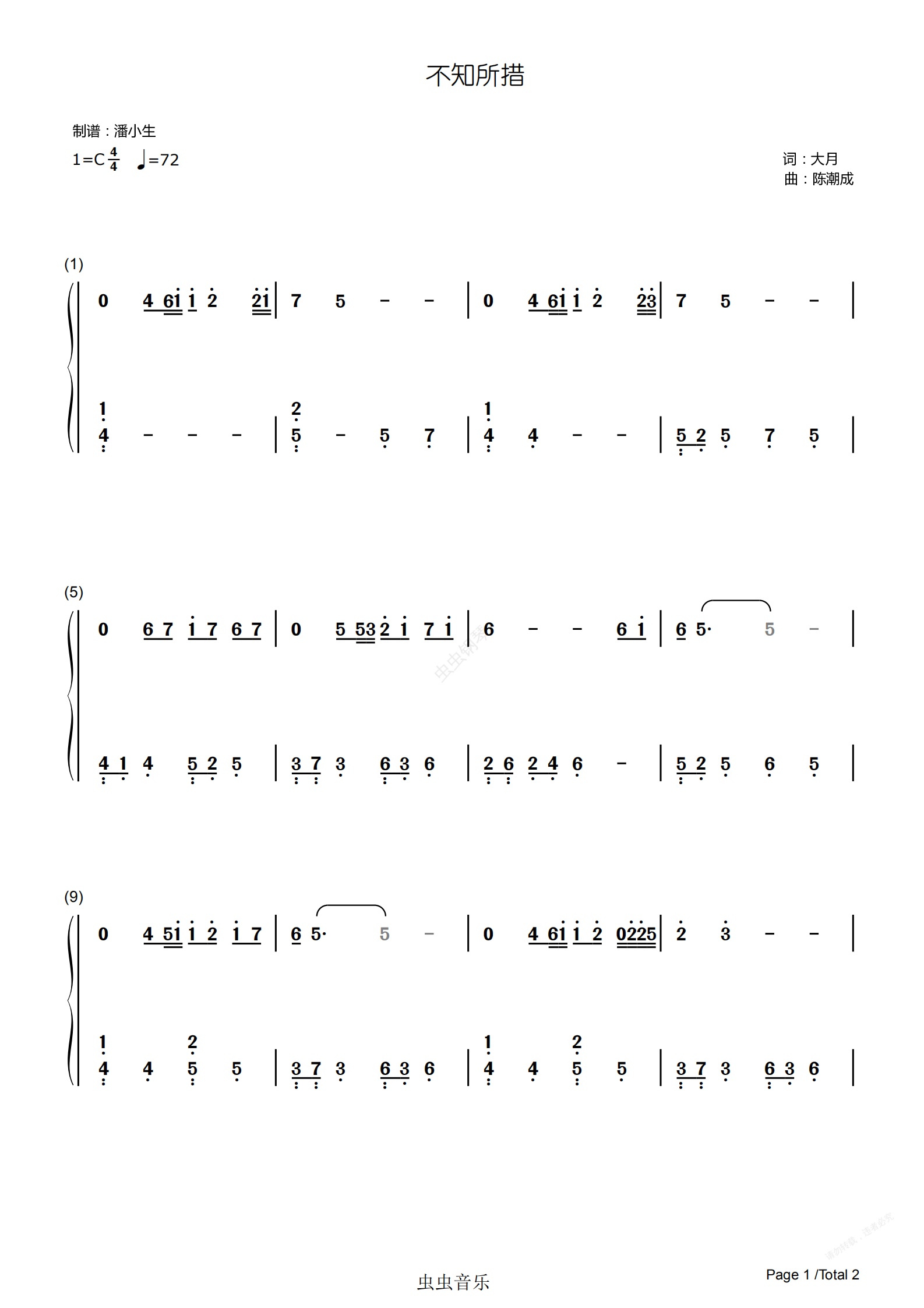 钢琴谱:[双手简谱] 不知所措 C调 简易版 王靖雯不胖