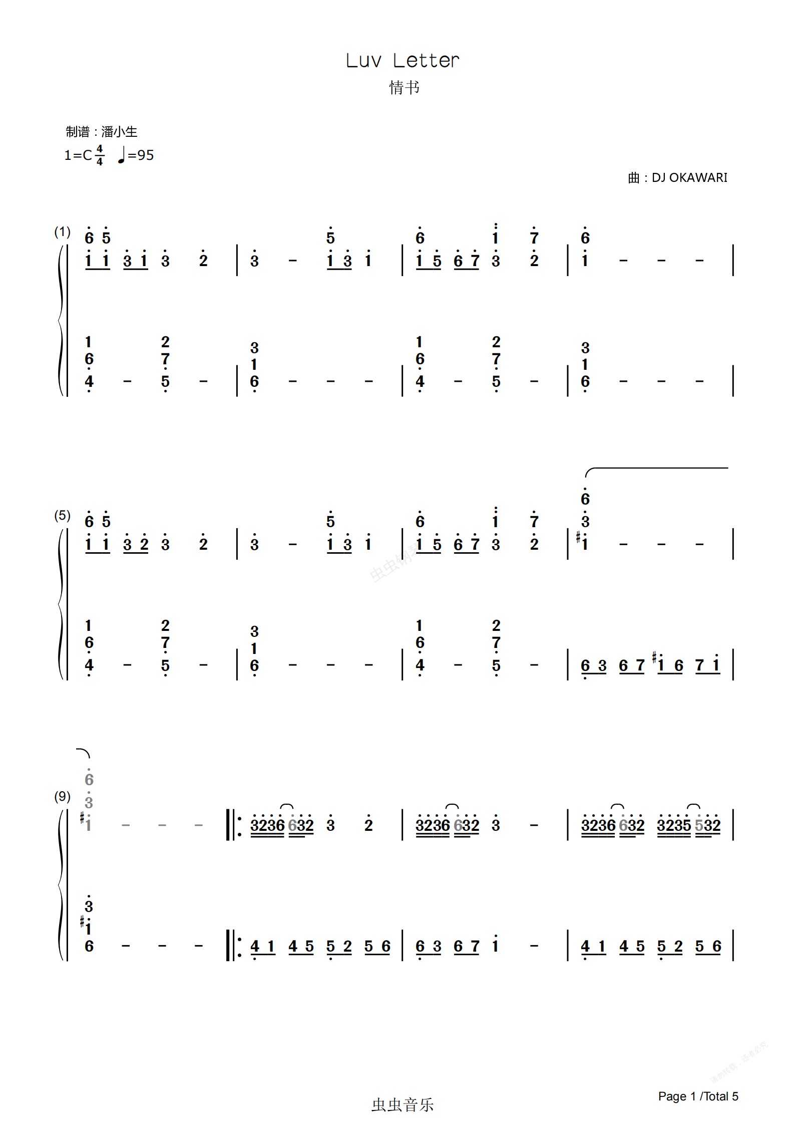 钢琴谱:[双手简谱] 情书 Luv Letter 简易版 C调
