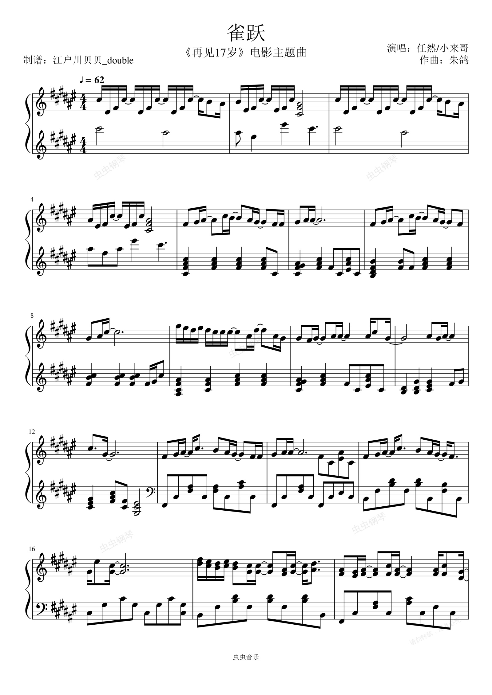 钢琴谱:【再见17岁】《雀跃》(任然/小来哥)