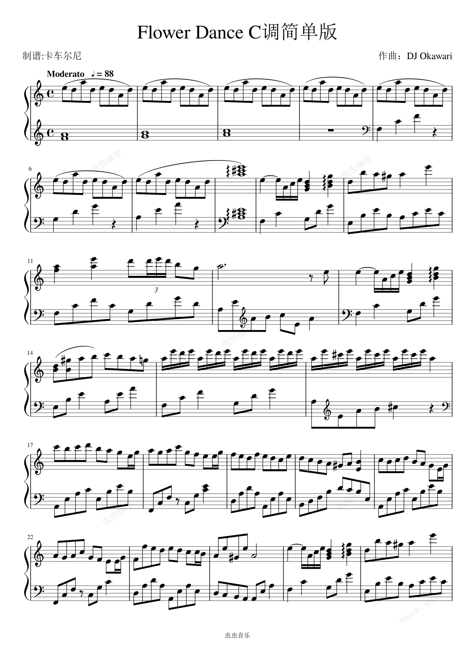 钢琴谱:Flower Dance C调简单版 车老师优化