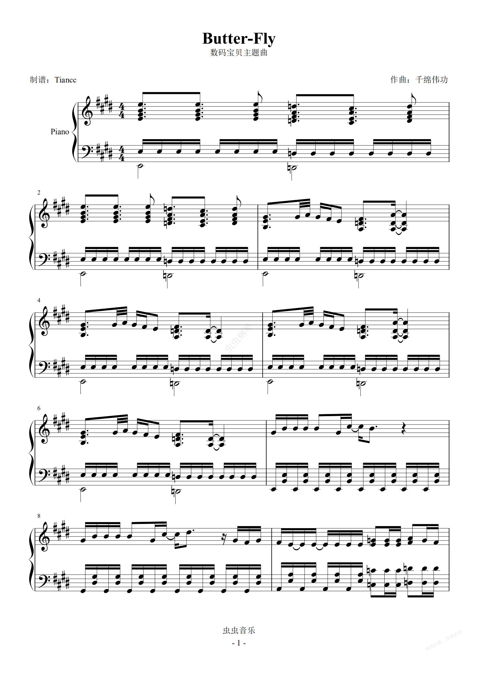钢琴谱:《Butter-Fly》完美可弹谱,数码宝贝主题曲