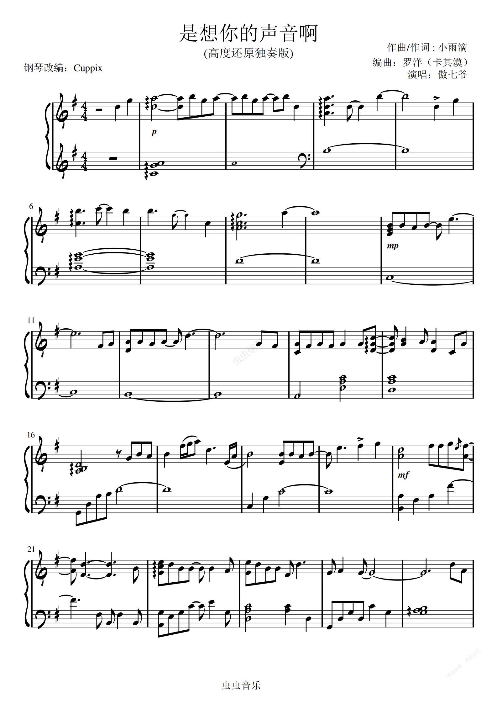 钢琴谱:傲七爷《是想你的声音啊》唯美超高还原独奏(Cuppix改编)