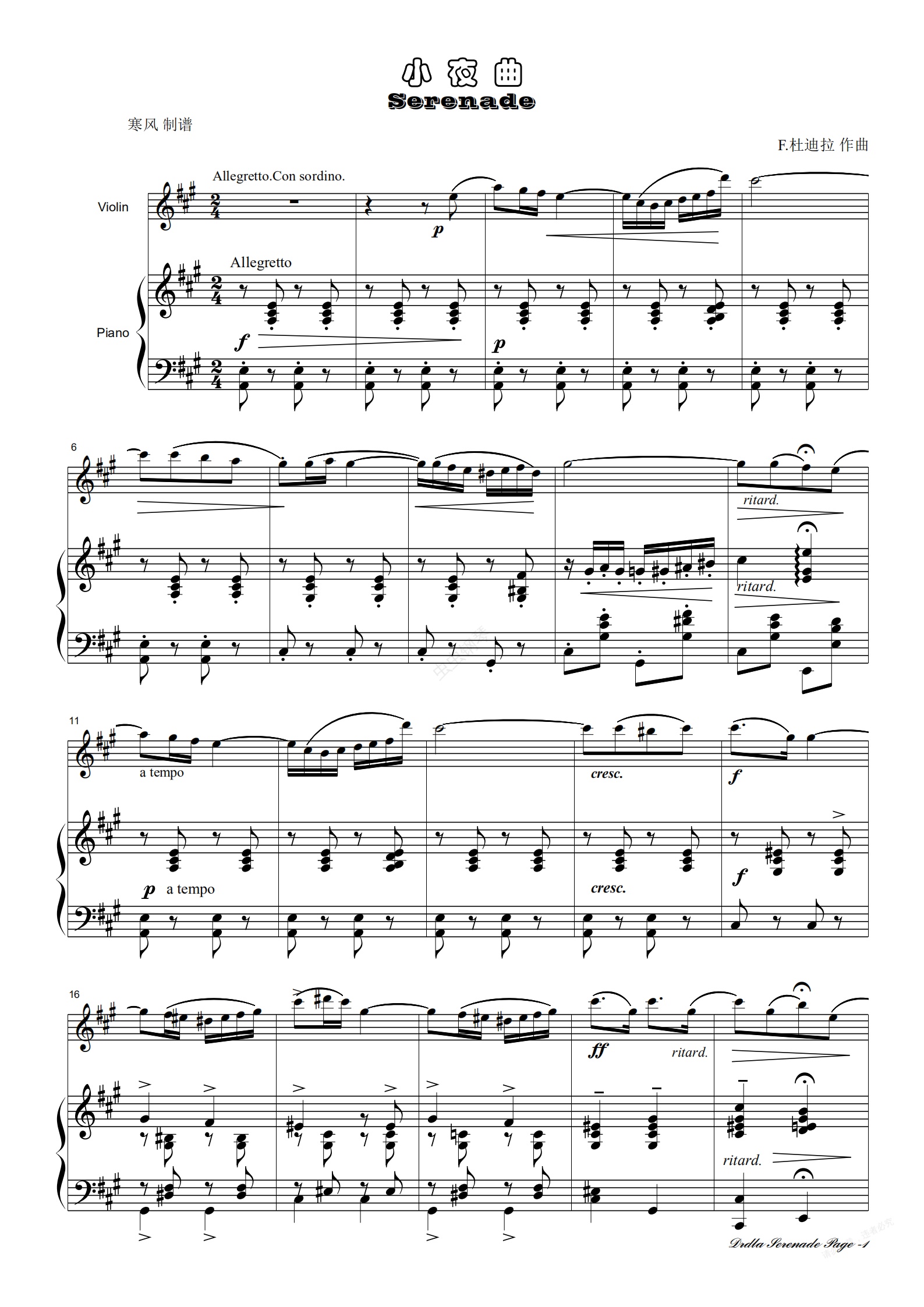 钢琴谱:杜迪拉-小夜曲(小提琴/钢琴)