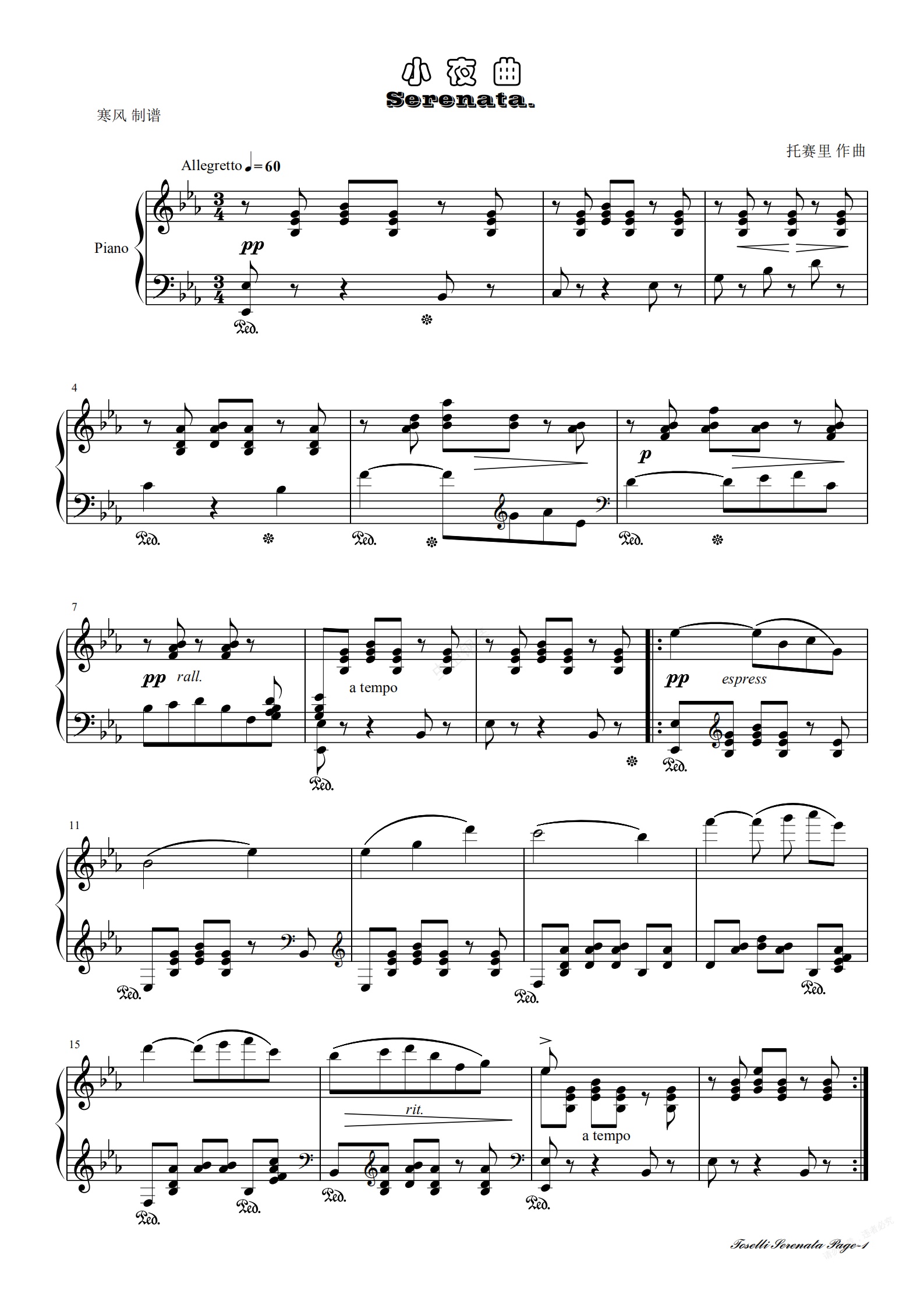 钢琴谱:托塞里-小夜曲