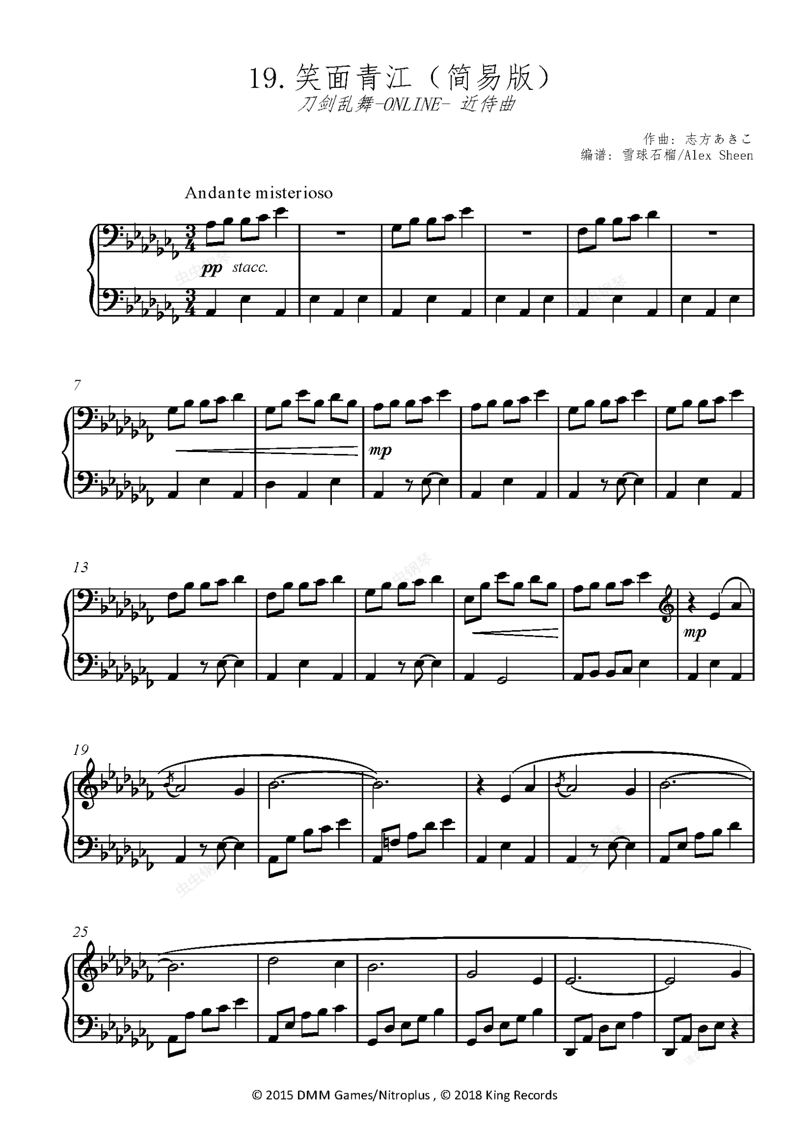 钢琴谱:笑面青江 近侍曲 【刀剑乱舞】(简易版)