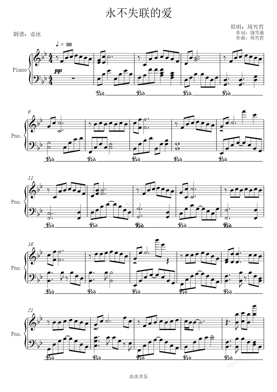 钢琴谱:永不失联的爱-壹冰钢琴版