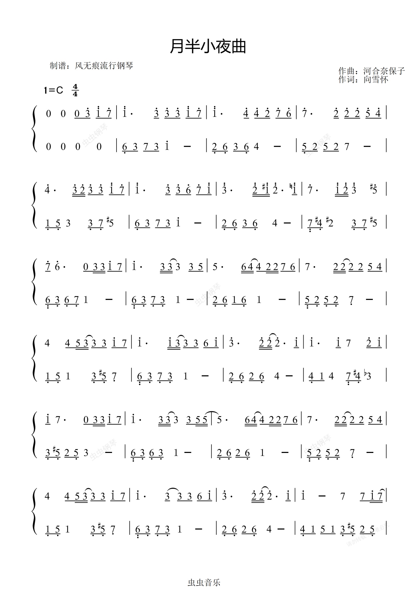 钢琴谱:月半小夜曲-李克勤〖数字简谱〗