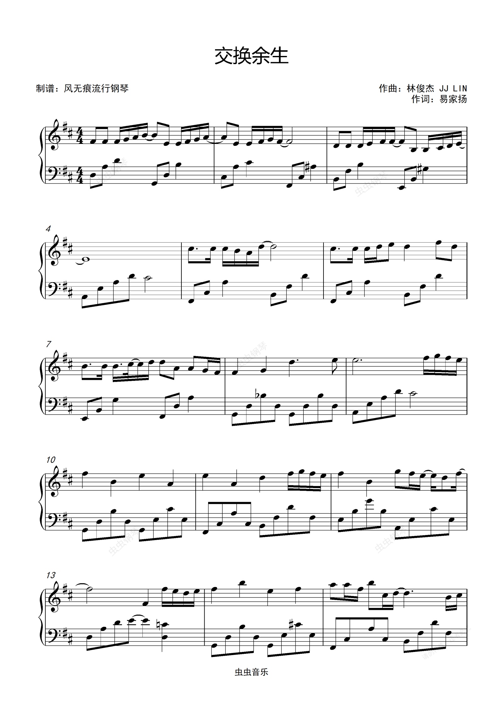 钢琴谱:交换余生-林俊杰〖简易动听〗