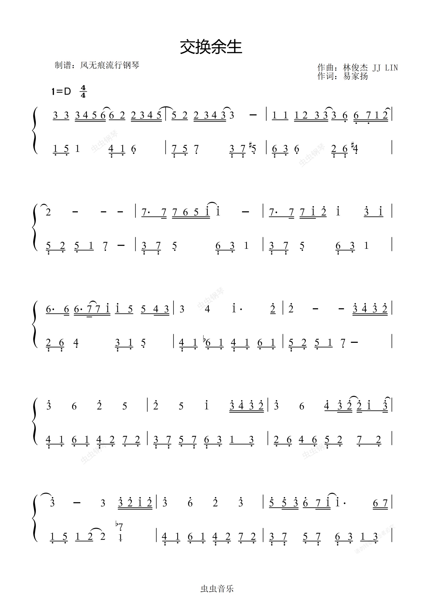 钢琴谱:交换余生-林俊杰〖数字简谱〗
