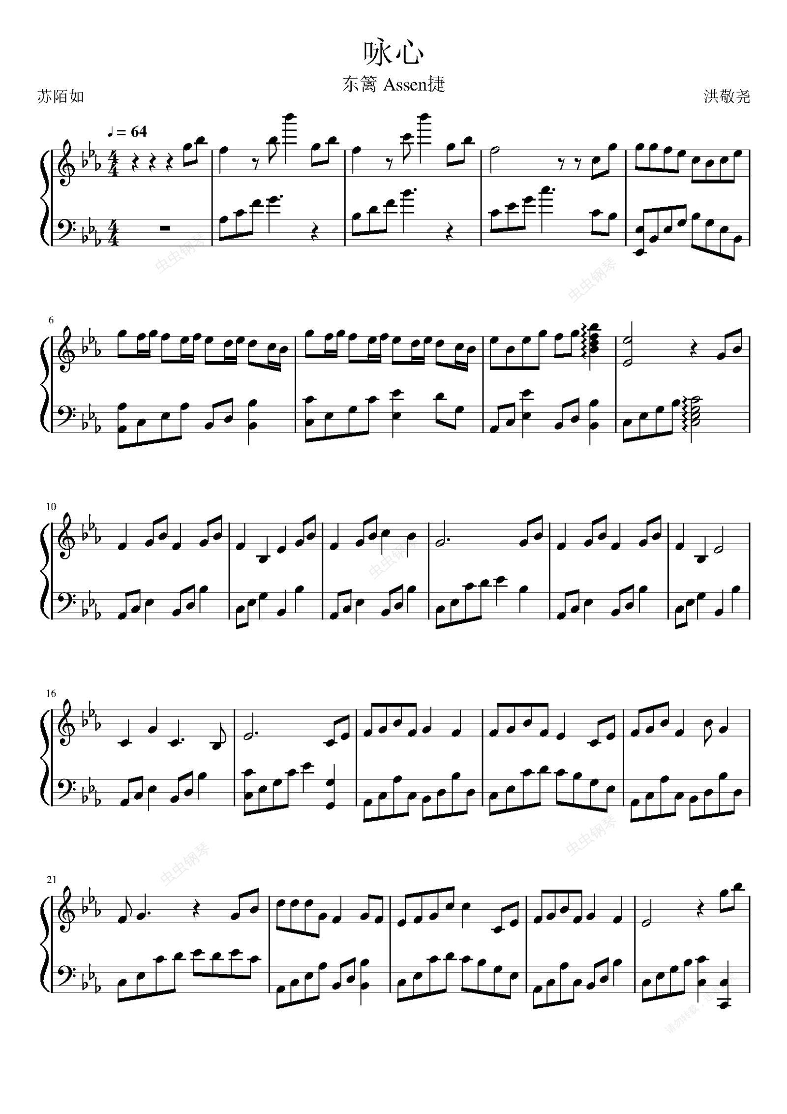 钢琴谱:咏心 原调演奏版