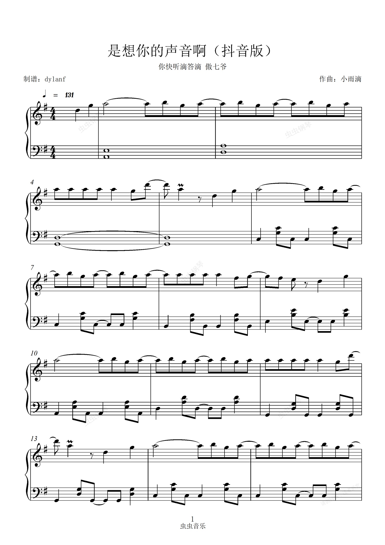 钢琴谱:你快听滴答滴滴答滴 是想你的声音啊(抖音版)