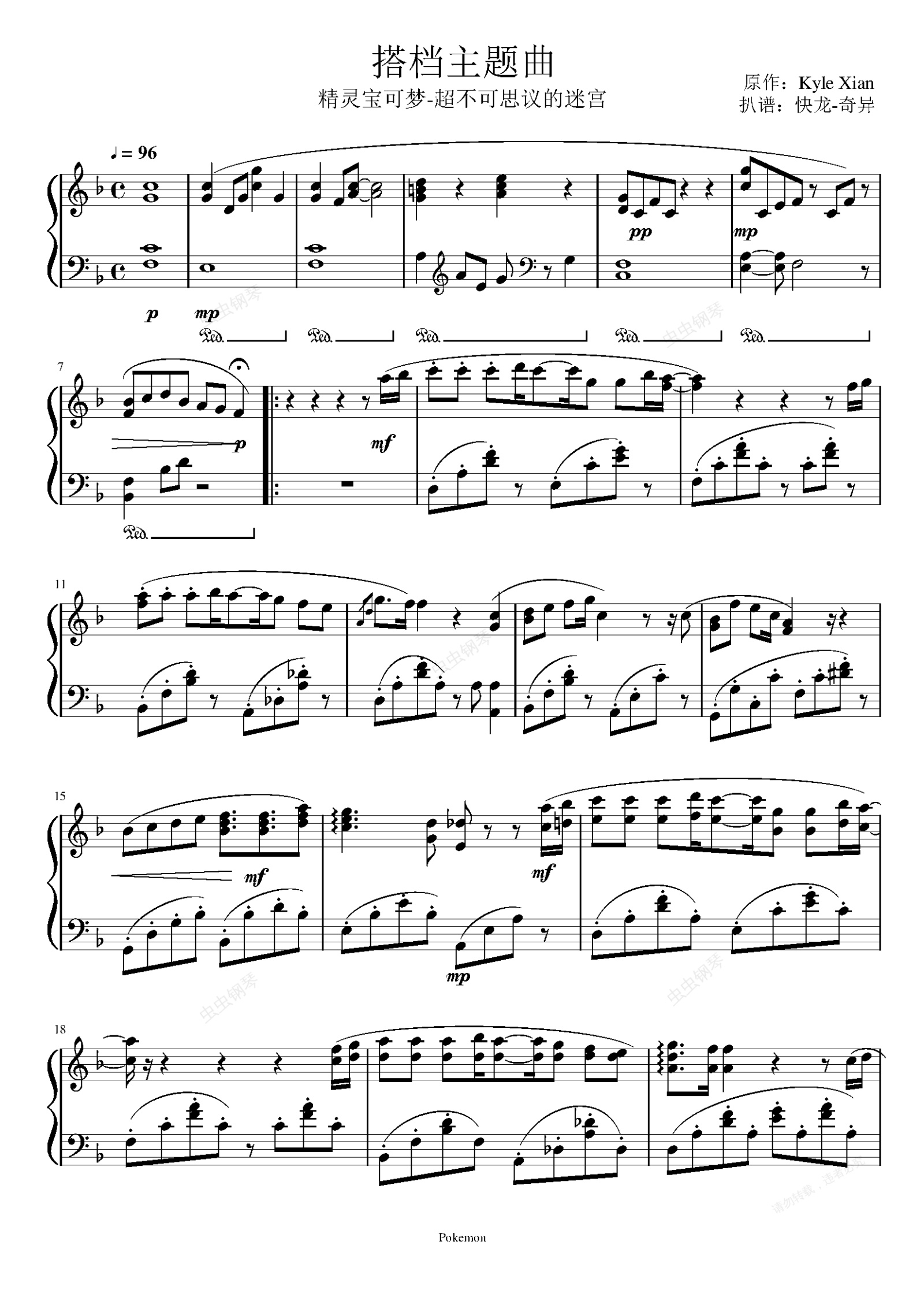钢琴谱:搭档主题曲 精灵宝可梦超不可思议的迷宫