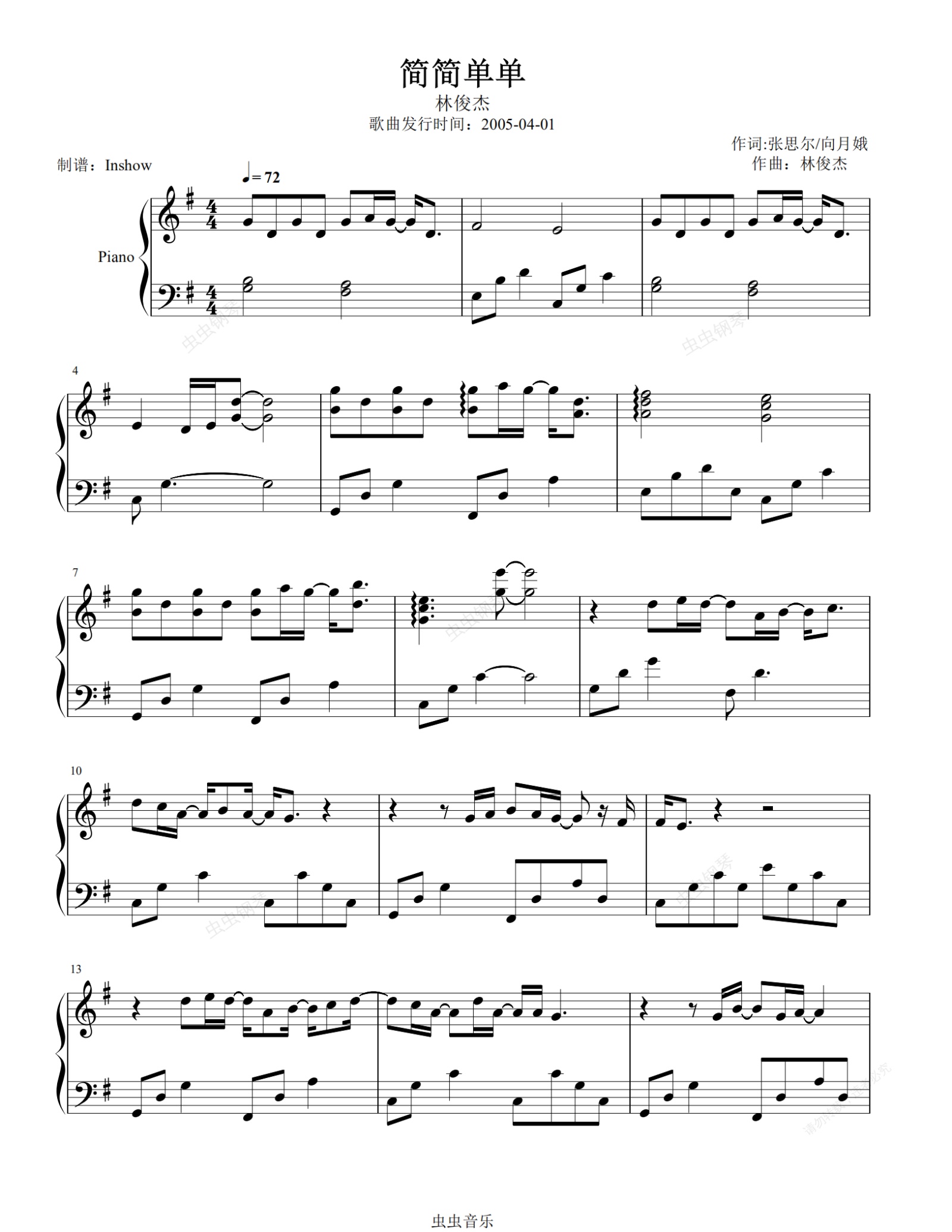 钢琴谱:林俊杰 - 简简单单【独奏谱】