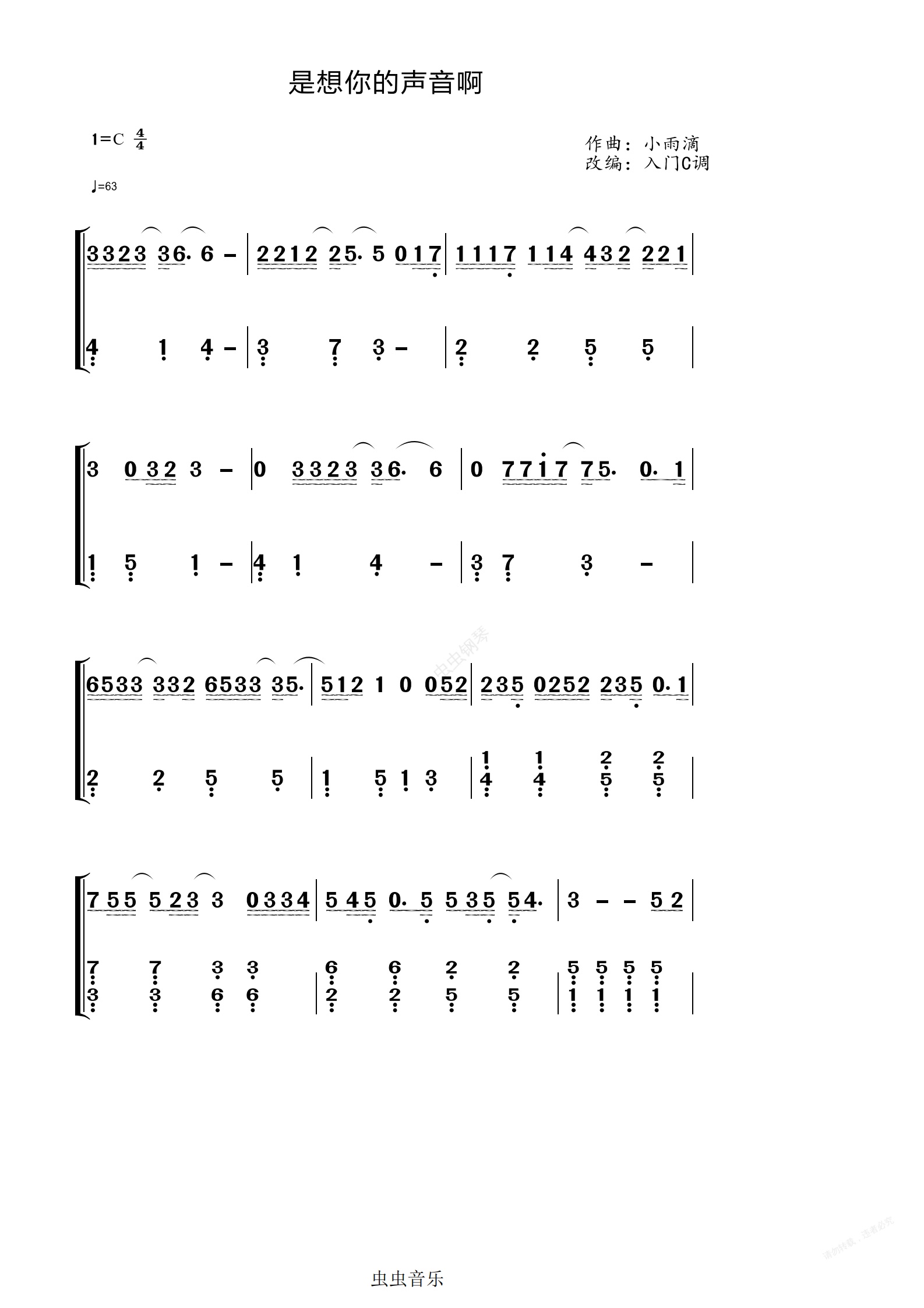 钢琴谱:傲七爷《是想你的声音啊》入门简谱