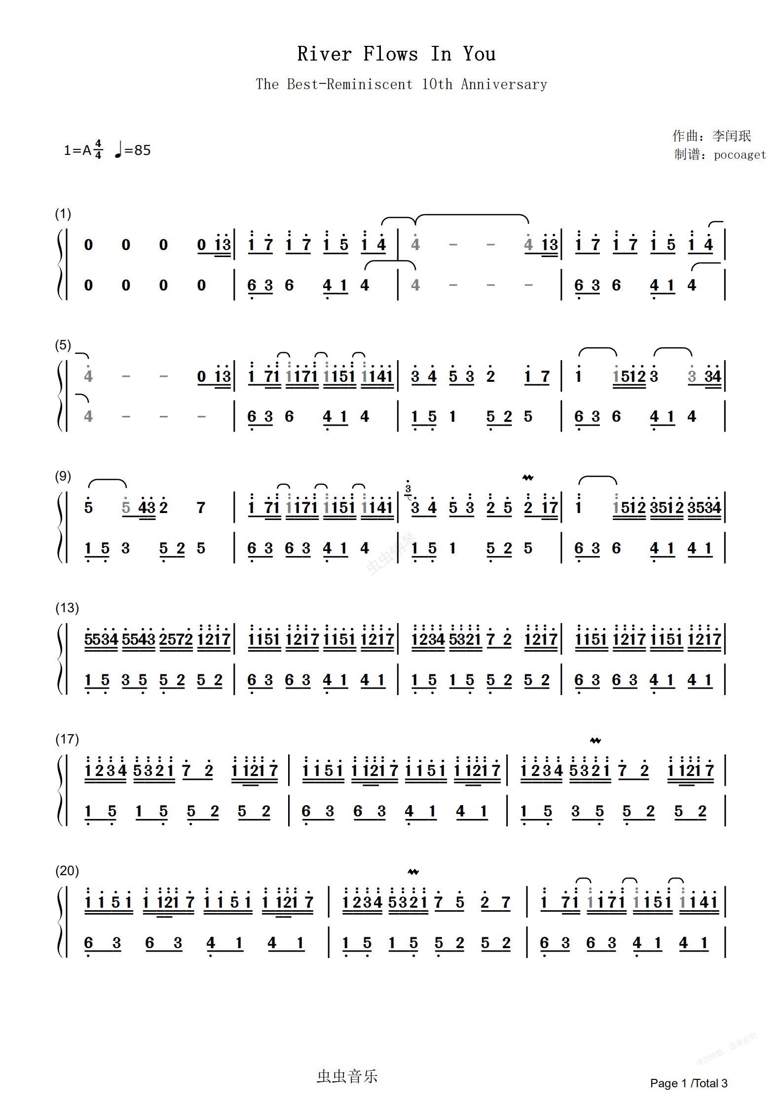 《River Flows In You》简谱,李闰珉十周年典藏版原曲扒(poc编配)