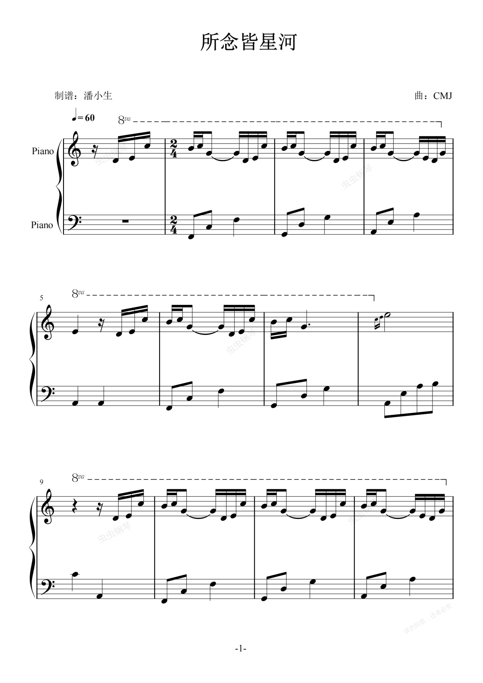 钢琴谱:所念皆星河 C调 简单版 CMJ