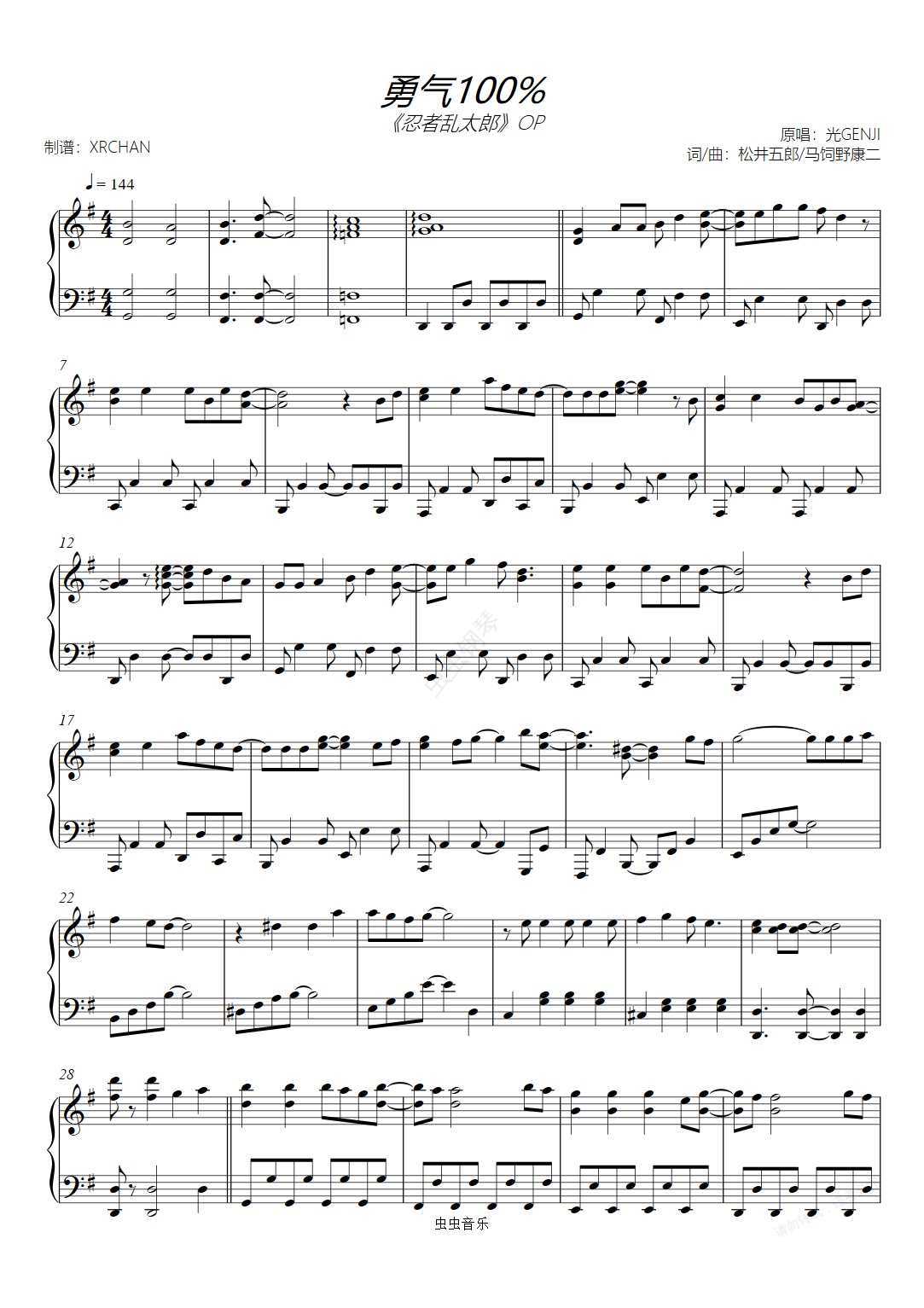 钢琴谱:勇气100% 《忍者乱太郎》OP 小朋友初级版