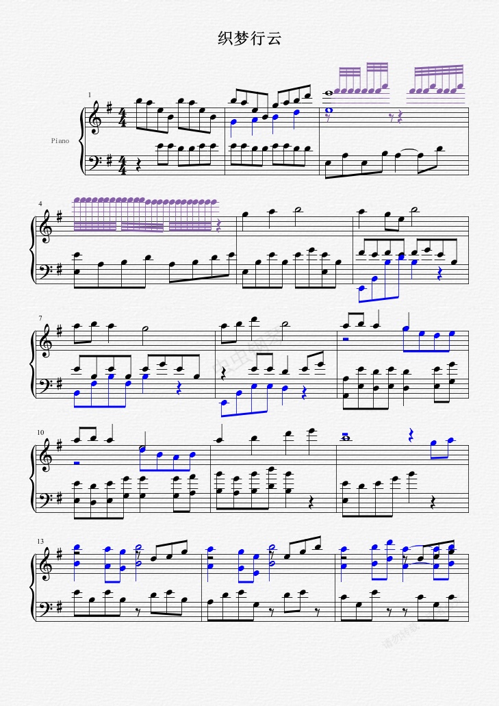 钢琴谱:织梦行云 《仙剑奇侠传四》