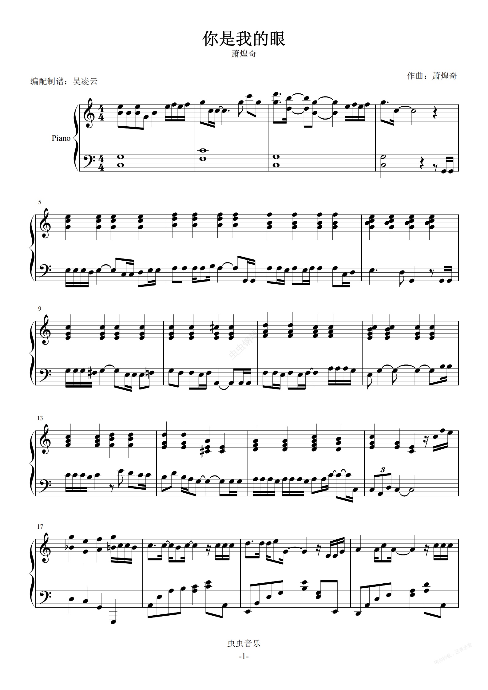 钢琴谱:你是我的眼 萧煌奇/林宥嘉 实用版