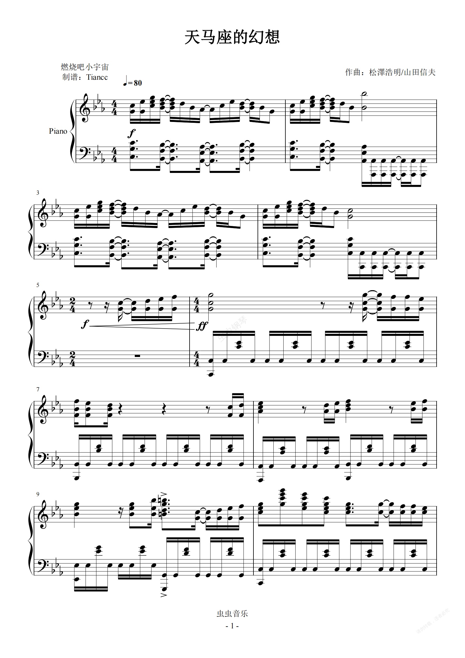 钢琴谱:《天马座的幻想》完美可弹谱!好听超燃