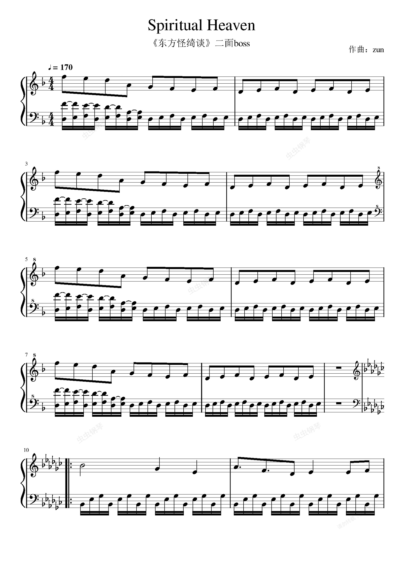 钢琴谱:东方怪绮谈 霊天 ~ Spiritual Heaven