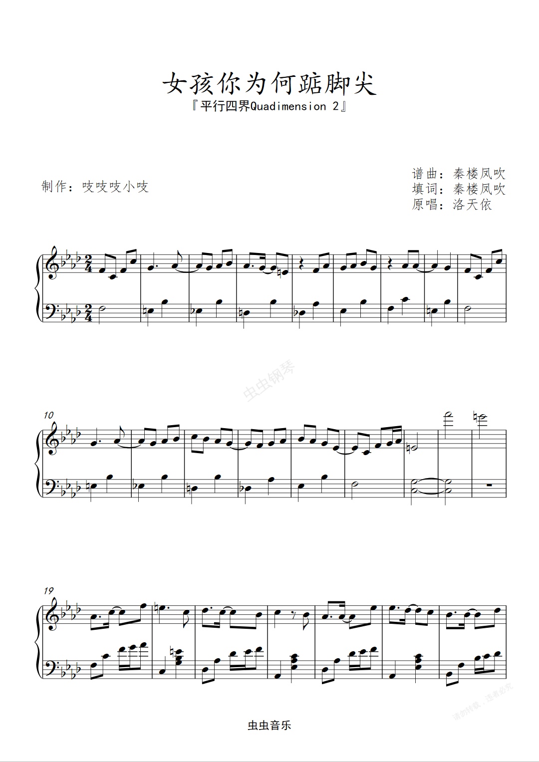 钢琴谱:女孩你为何踮脚尖 洛天依 双笙
