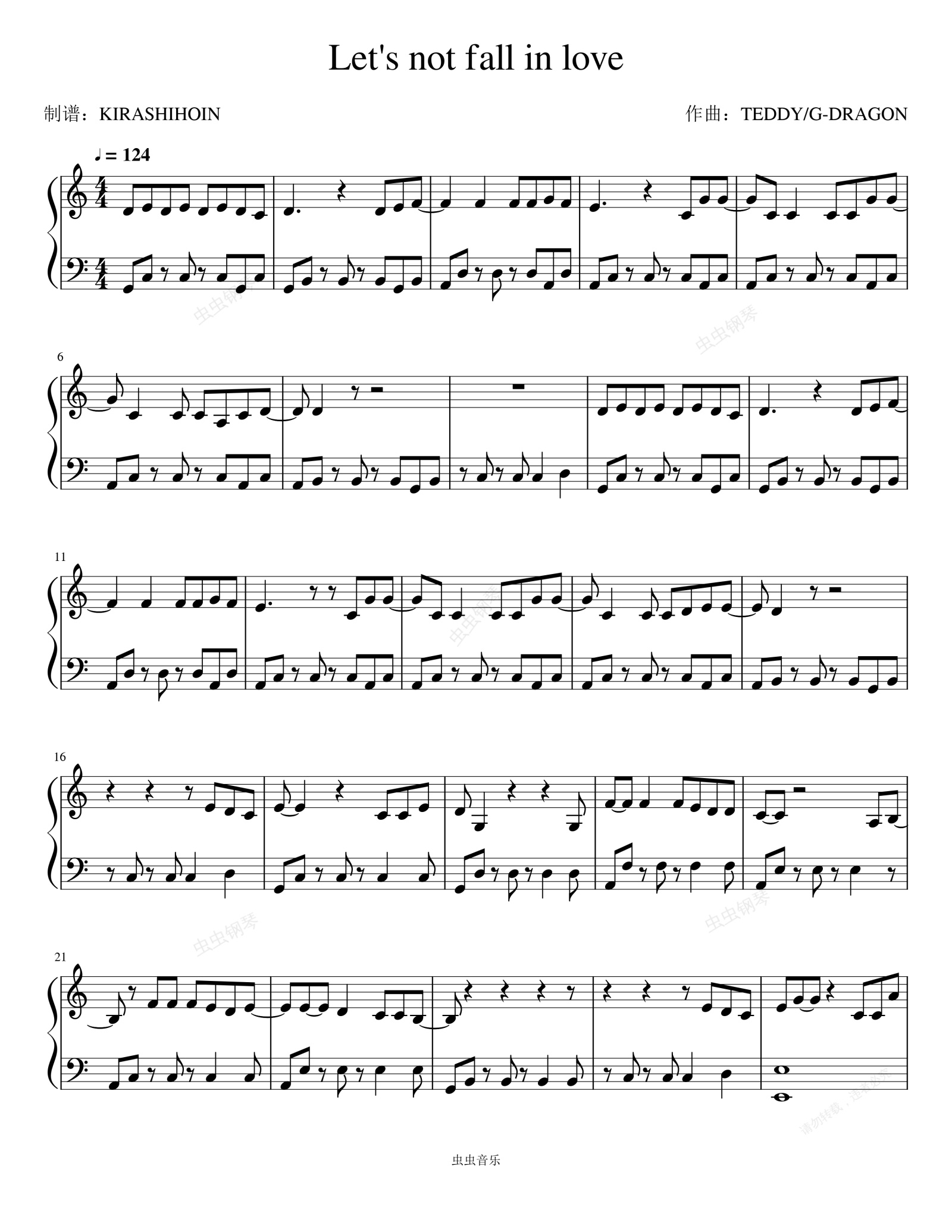 钢琴谱:Let's not fall in love/우리 사랑하지 말아요