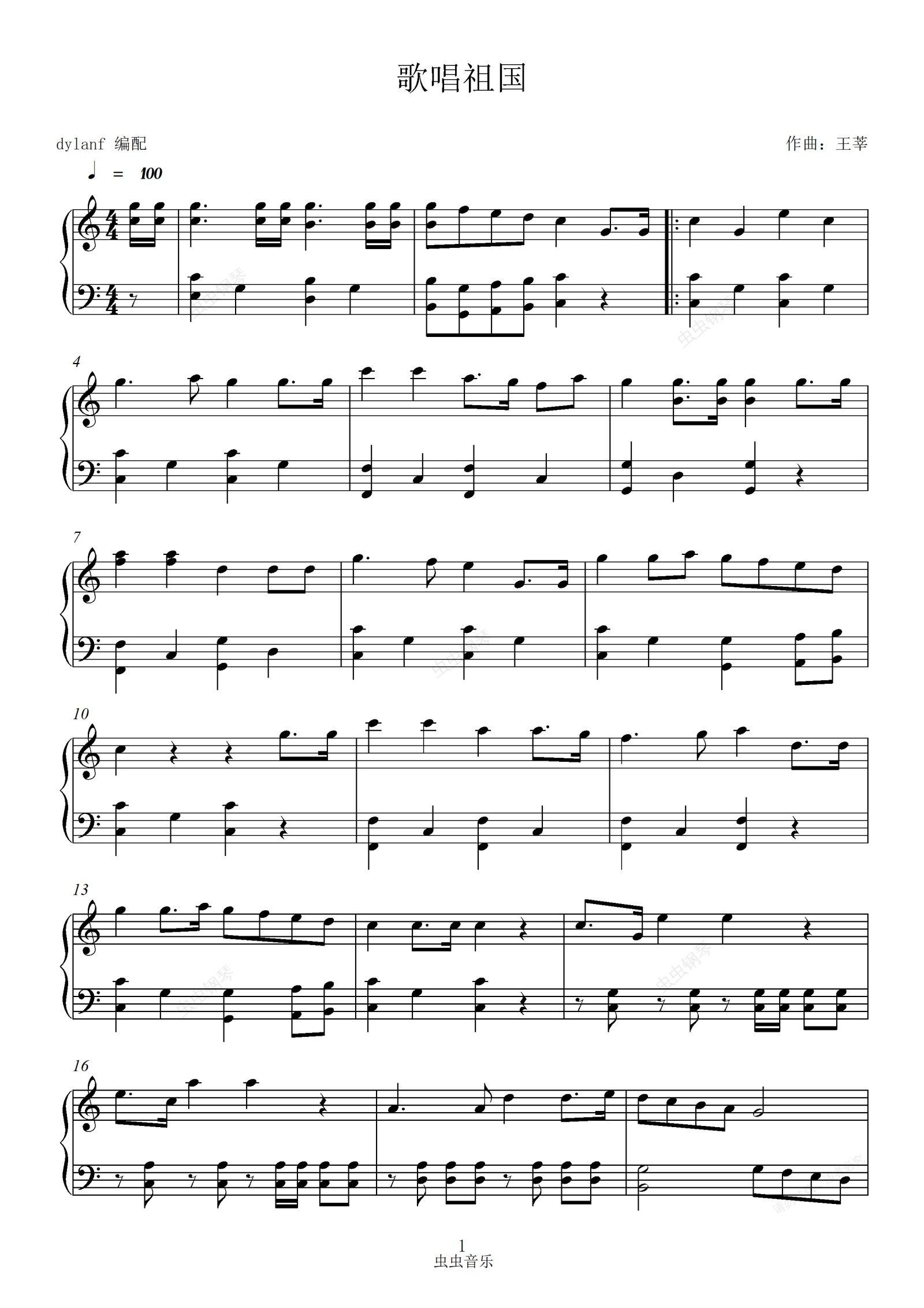 钢琴谱:歌唱祖国(钢琴版)