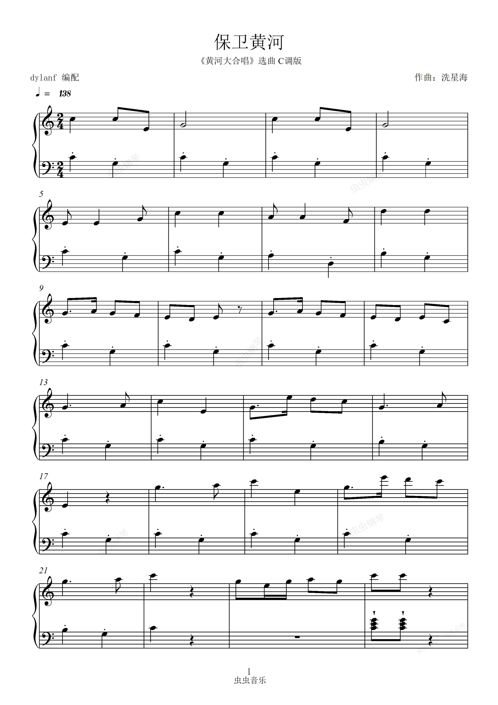 钢琴谱:保卫黄河 C调(易弹钢琴版)