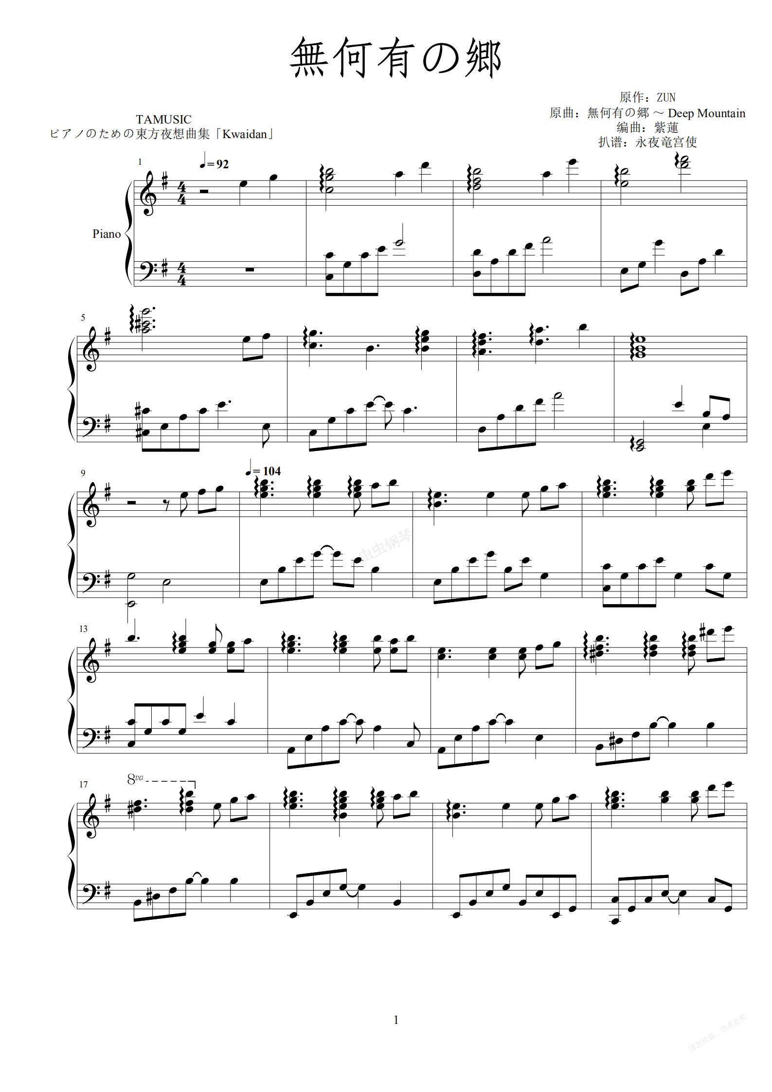 大家好,我是永夜竜宫使,这次带来的是专辑ピアノのための東方夜想曲集「」中紫莲的《无何有の郷》,原曲是ZUN在東方正作第7作第一关道中BGM:《无何有の郷》。