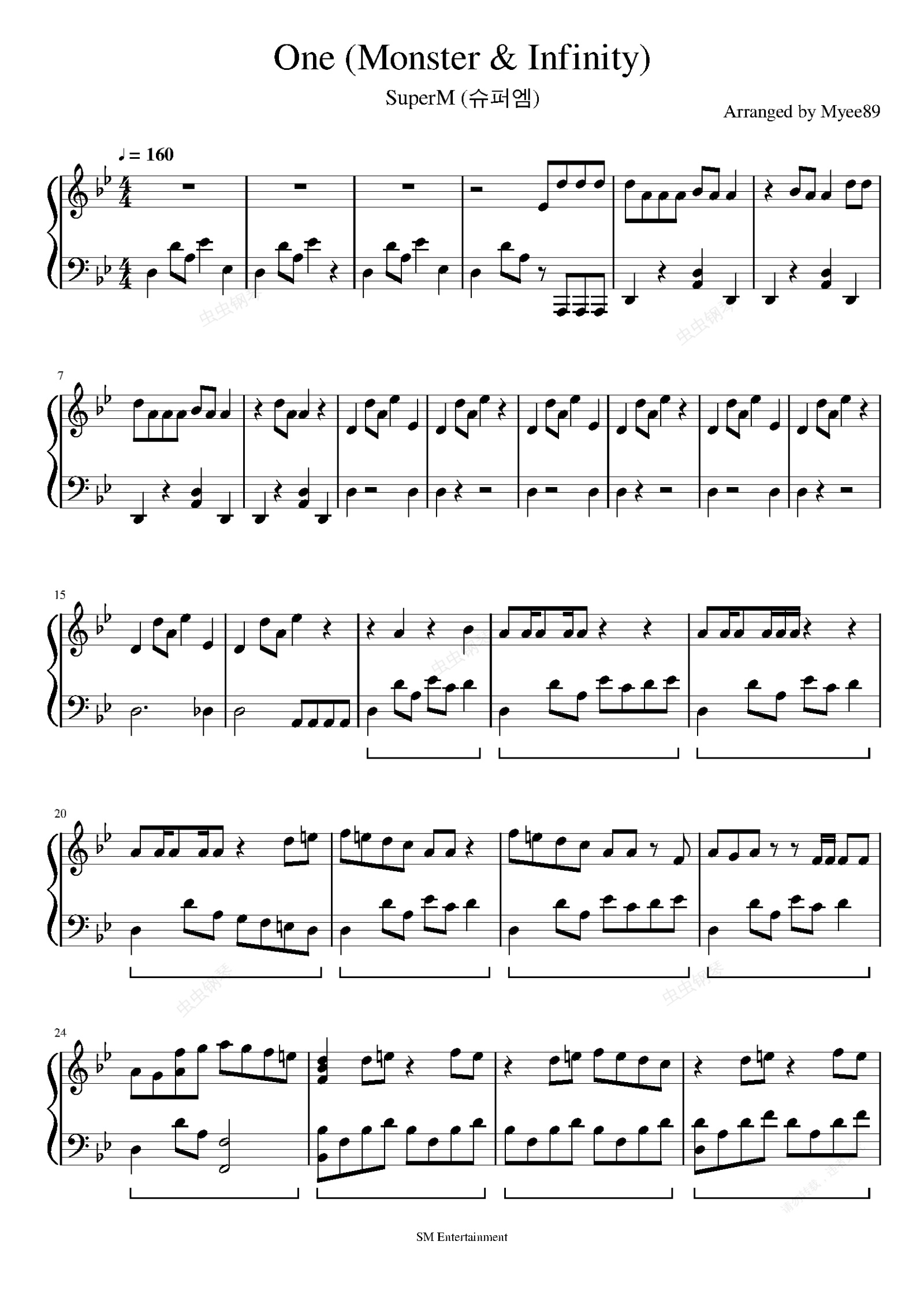 钢琴谱:SuperM - One (Monster&Infinity) 钢琴谱