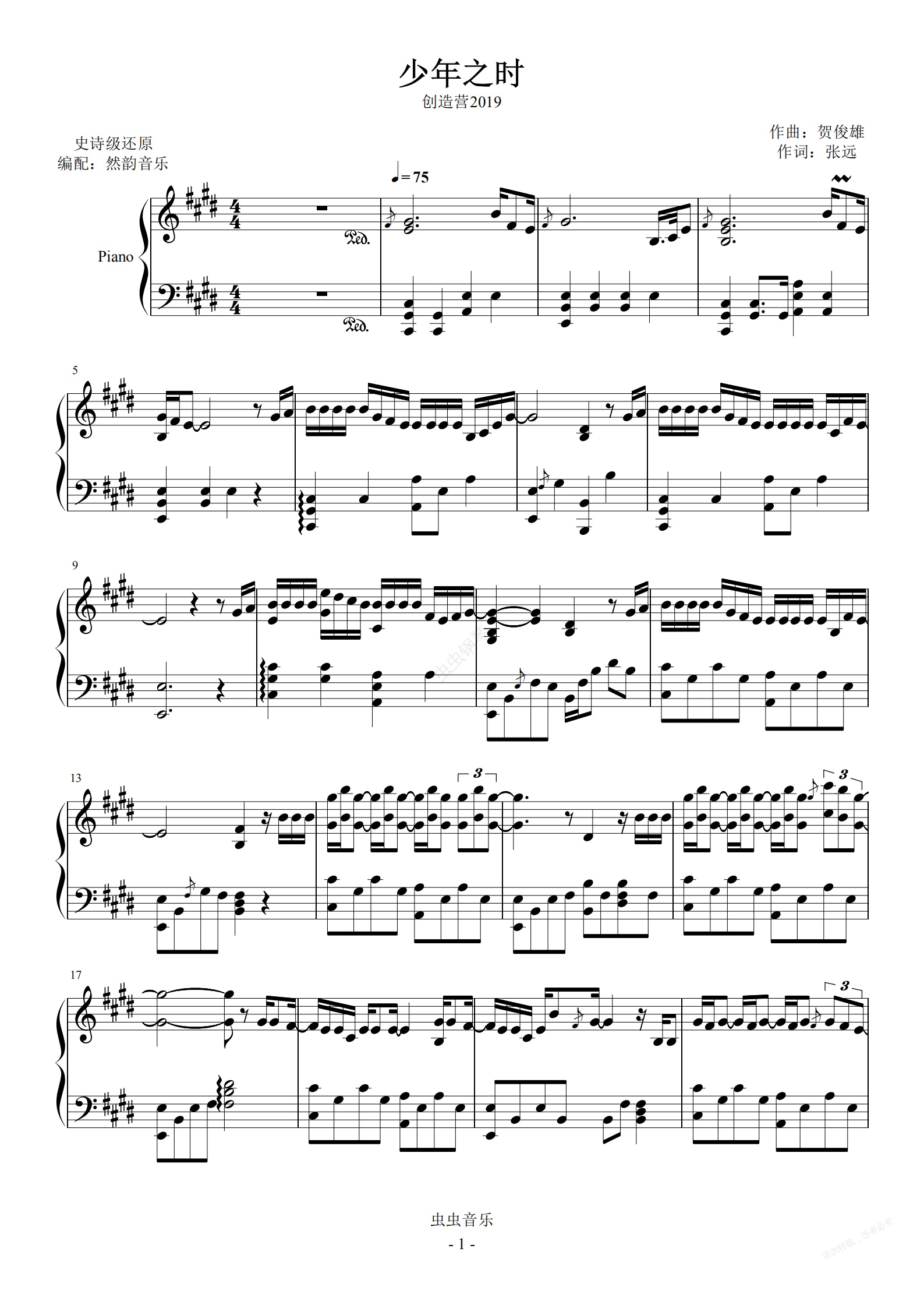 钢琴谱:【然韵音乐】少年之时-创造营2019 全网最还原