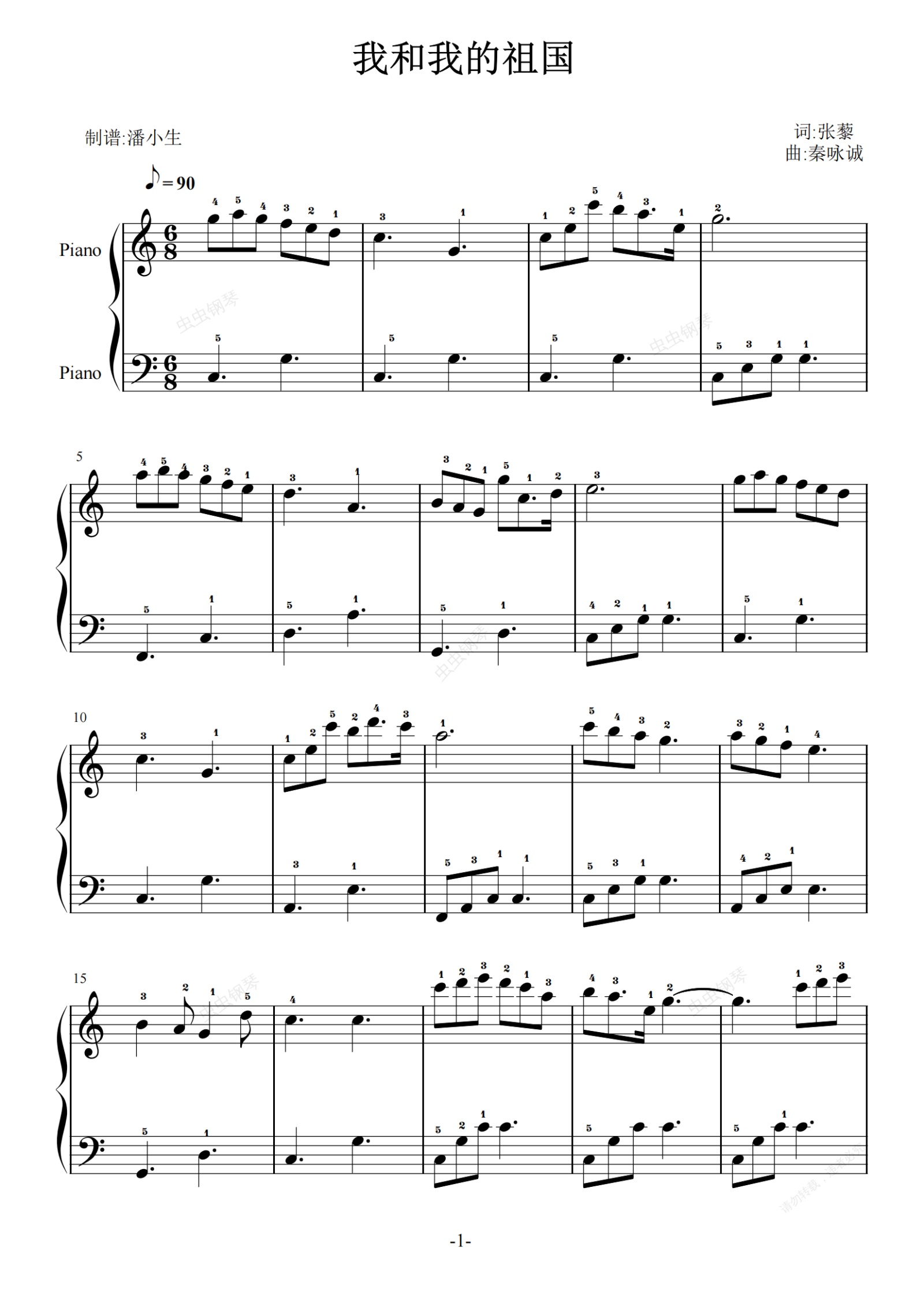 钢琴谱:我和我的祖国 完整指法 C调 简单版 初学者优选